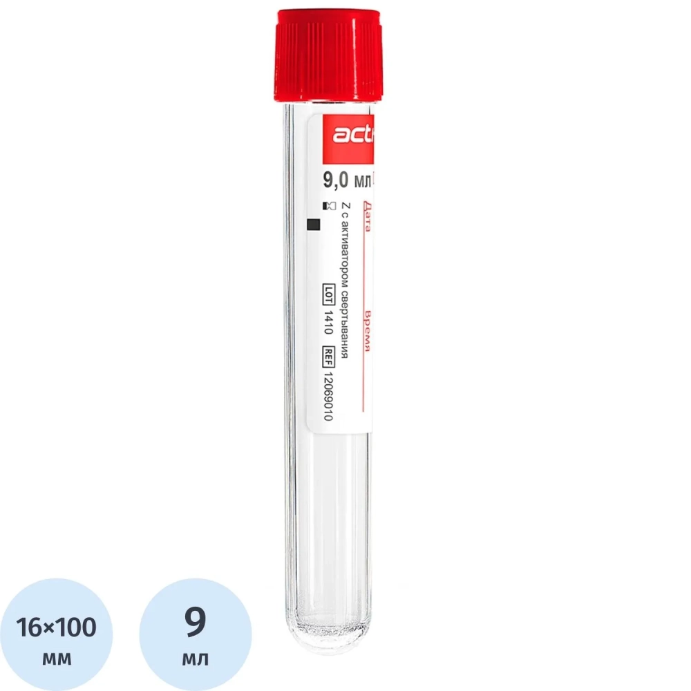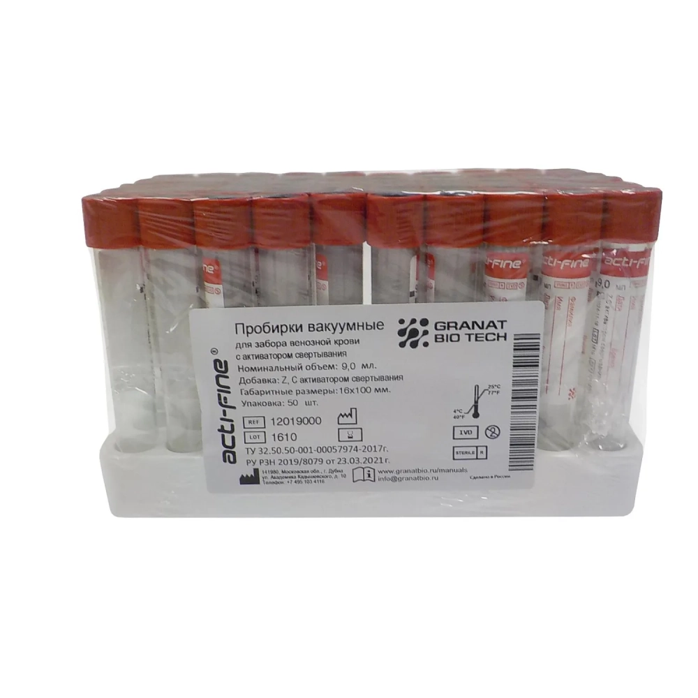 Вакуумные пробирки с акт-ом свертыв 9мл 16х100 мм Acti-Fine 50 шт/уп