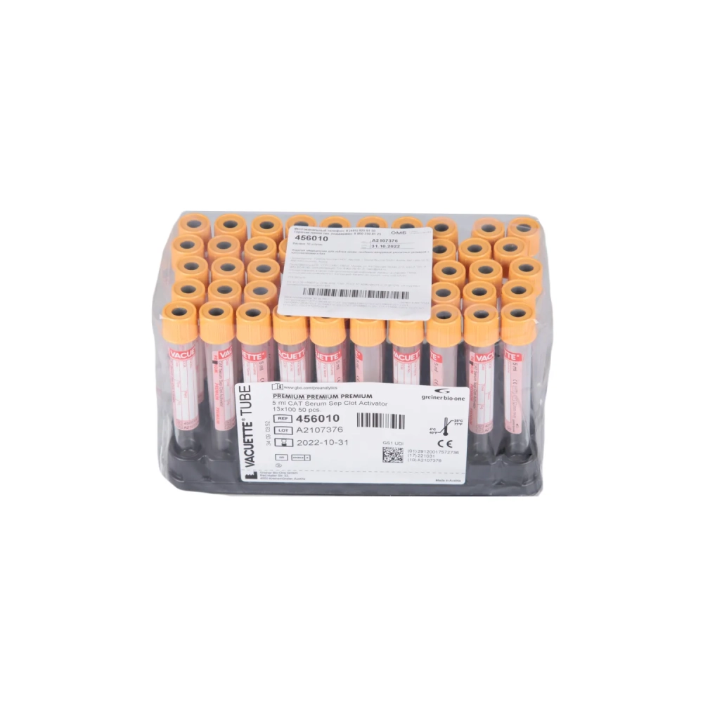 Вакуумные пробирки с акт-ром сверт и гелем 5 мл ж VACUETTE 456010 50шт/уп