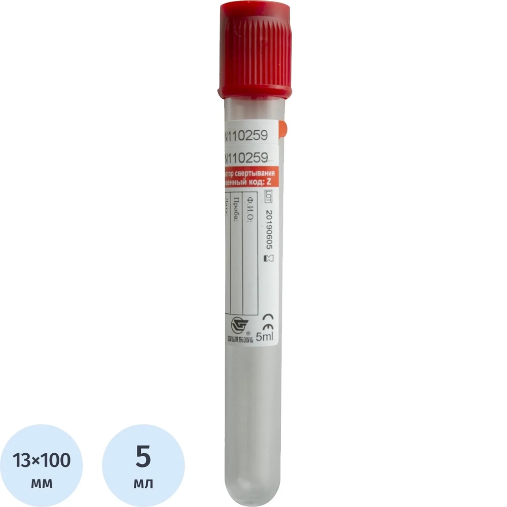 Вакуумные пробирки с акт-ром свертывания 5 мл, 13х100 мм, Cerebrum 100шт/уп