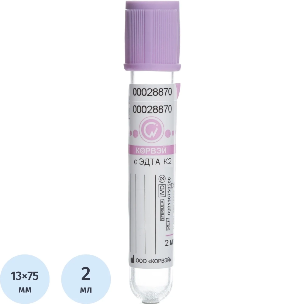 Вакуумные пробирки с ЭДТА-К2, 2мл, 13х75 мм Корвэй 100шт/уп
