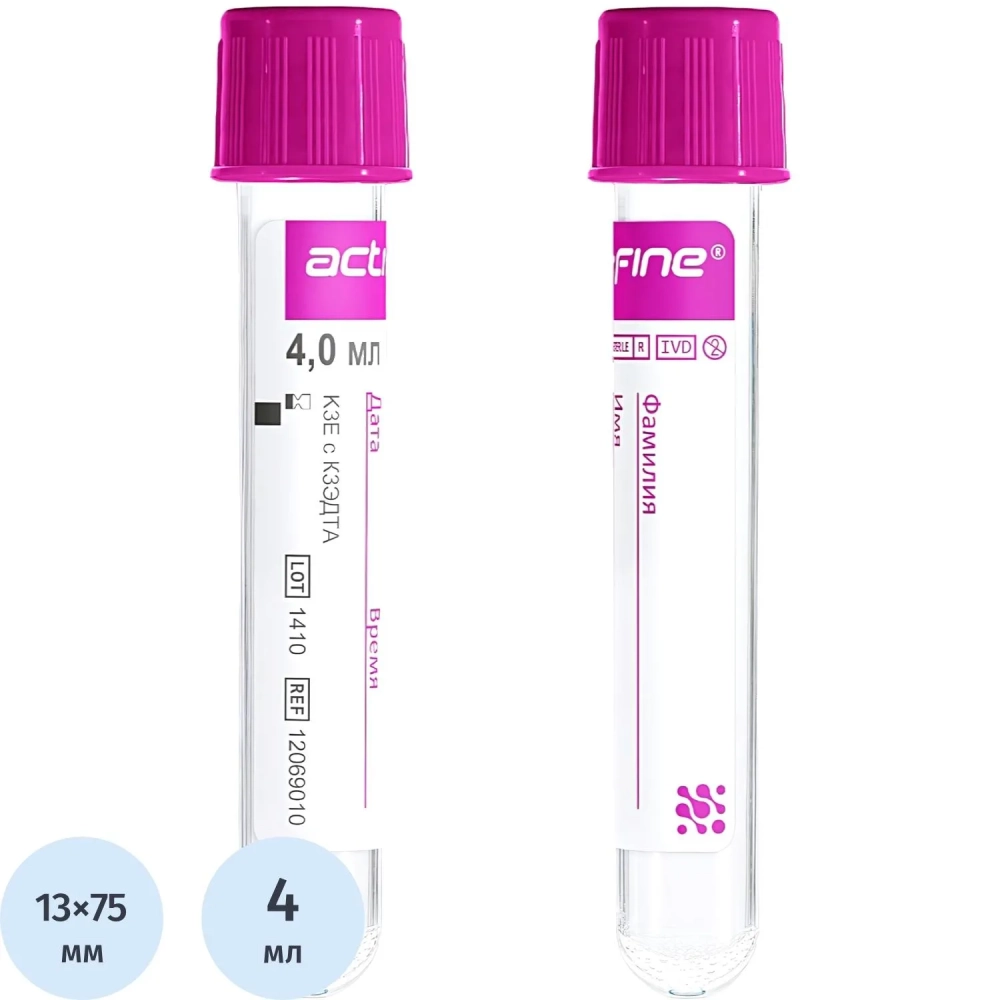 Вакуумные пробирки с ЭДТА-К3 4 мл (13х75мм) Acti-Fine 50 шт/уп