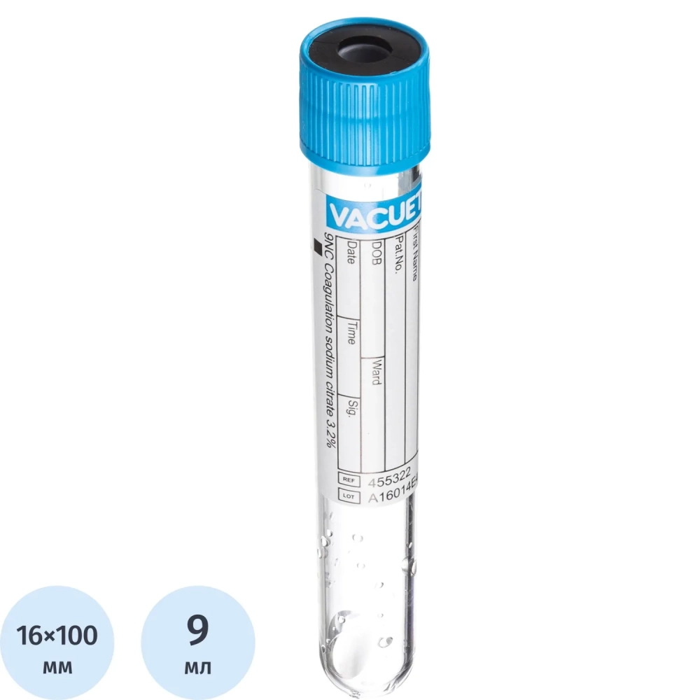 Вакуумные пробирки с Na цитратом 3,2% 9 мл VACUETTE 455322 50шт/уп