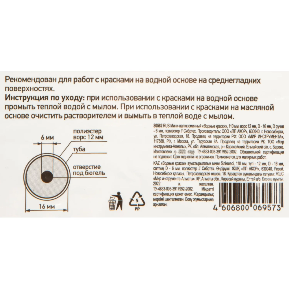 Валик сменный 110 мм D=16 мм, ворс 12 мм полиэстер Сибртех 80582