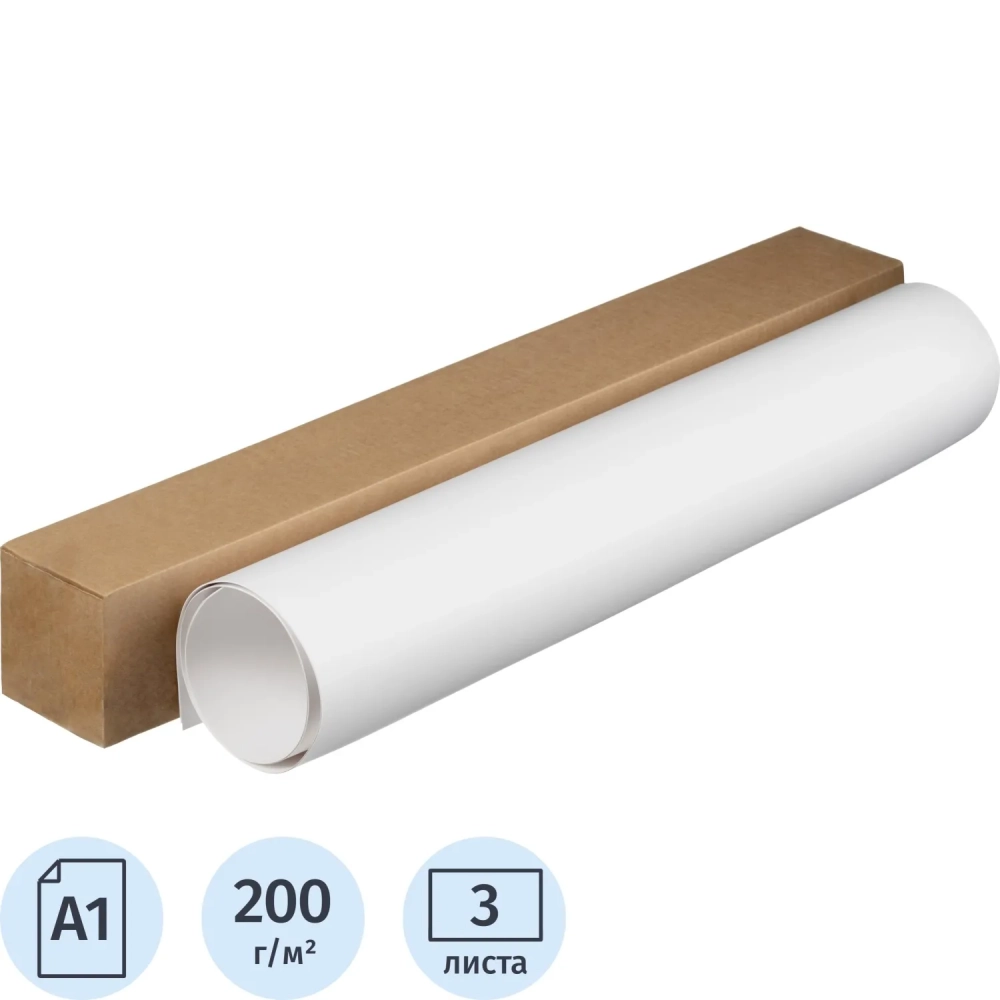 Ватман (бумага чертежная) 610х860мм 200г КБФГ 3л/уп, тубус 100х100х710мм
