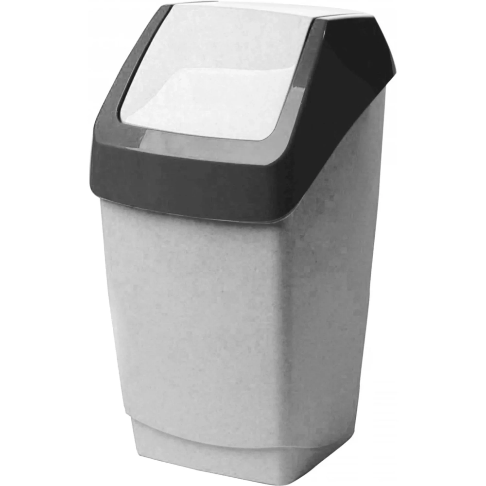 Ведро мусорное пласт 15л прям сер с черн крыш-маят мрамор 260х460х250мм_СПБ