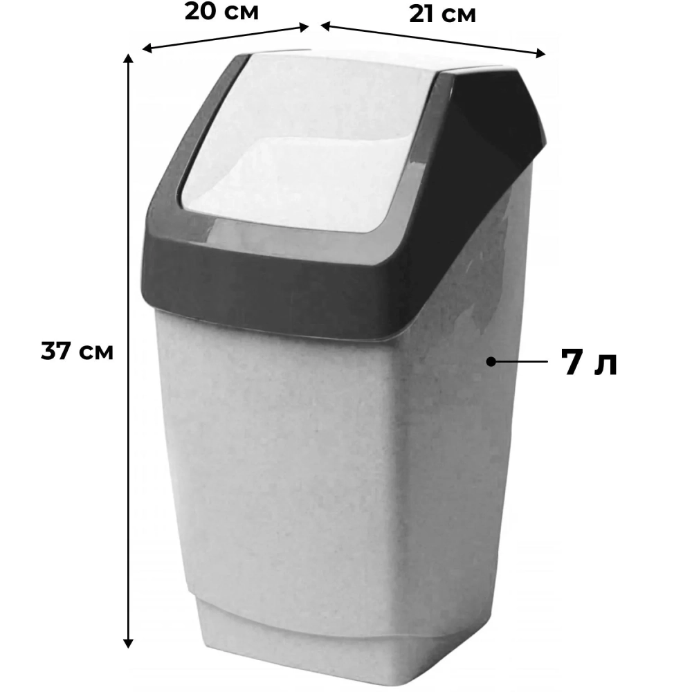 Ведро мусорное пласт 7л прям сер с черн крыш-маят мрамор 210х370х200мм_СПБ