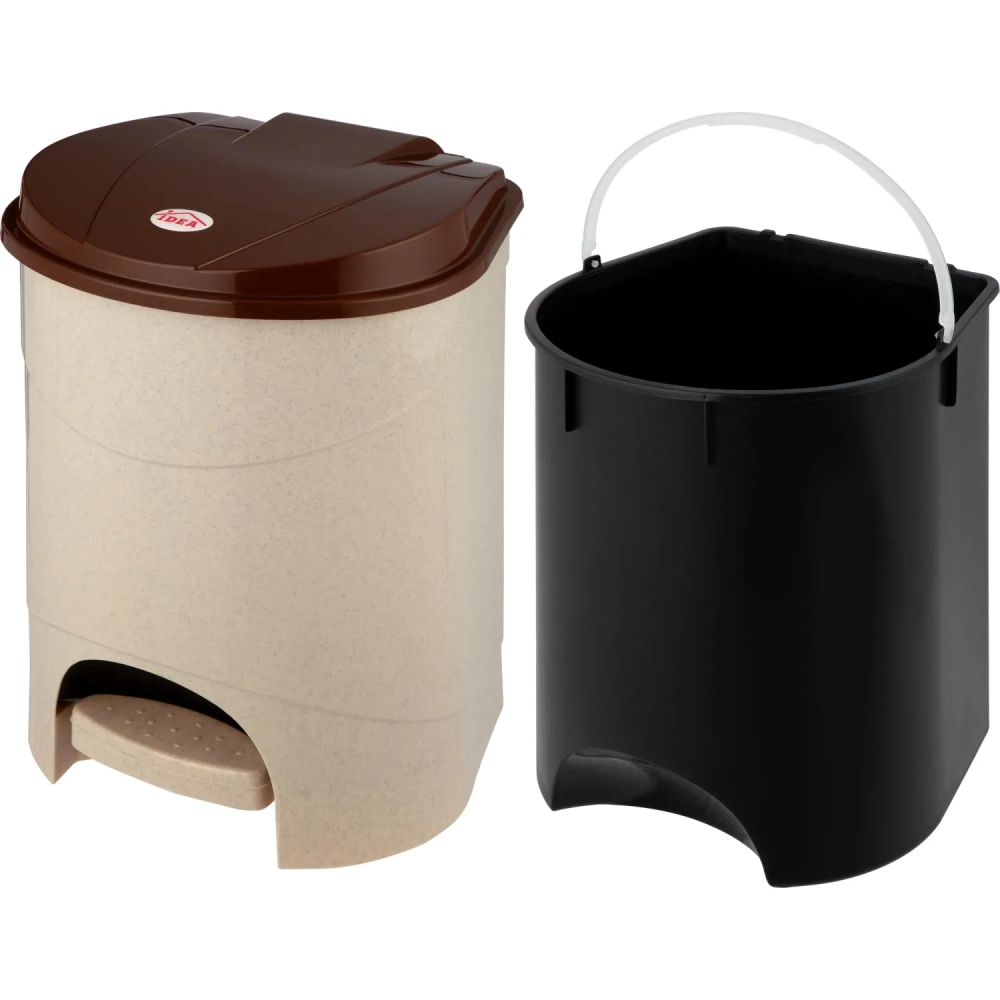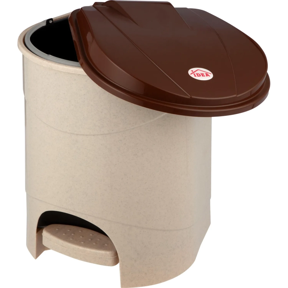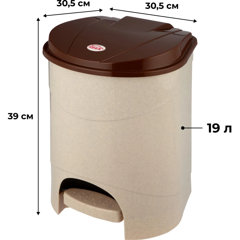 Ведро мусорное пластик 19л прям беж с пед и корич крыш мрамор 305х390х305мм
