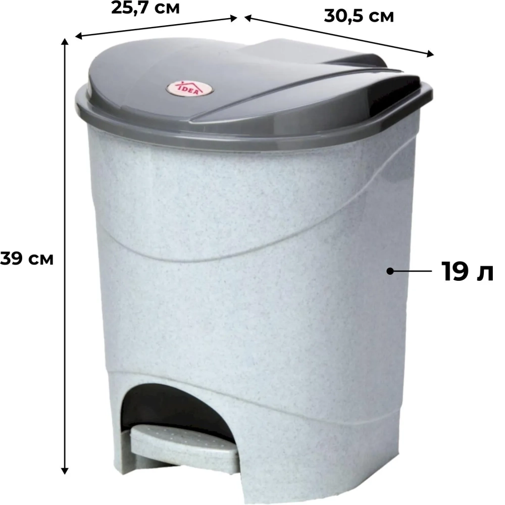 Ведро мусорное пластик 19л прям с пед и крышк сер с черн 305х390х257мм_СПБ
