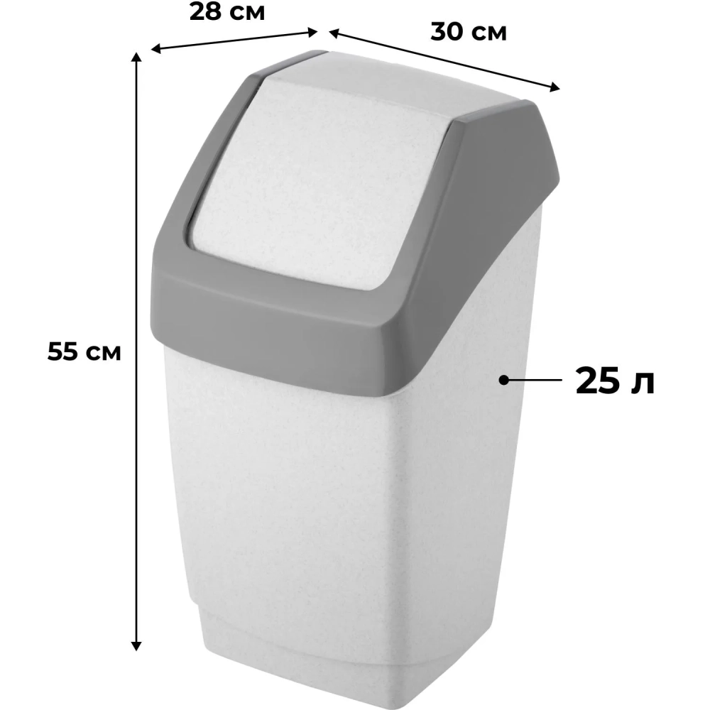 Ведро мусорное пластик 25л прям сер с черн крышк-маят мрамор 300х550х280мм