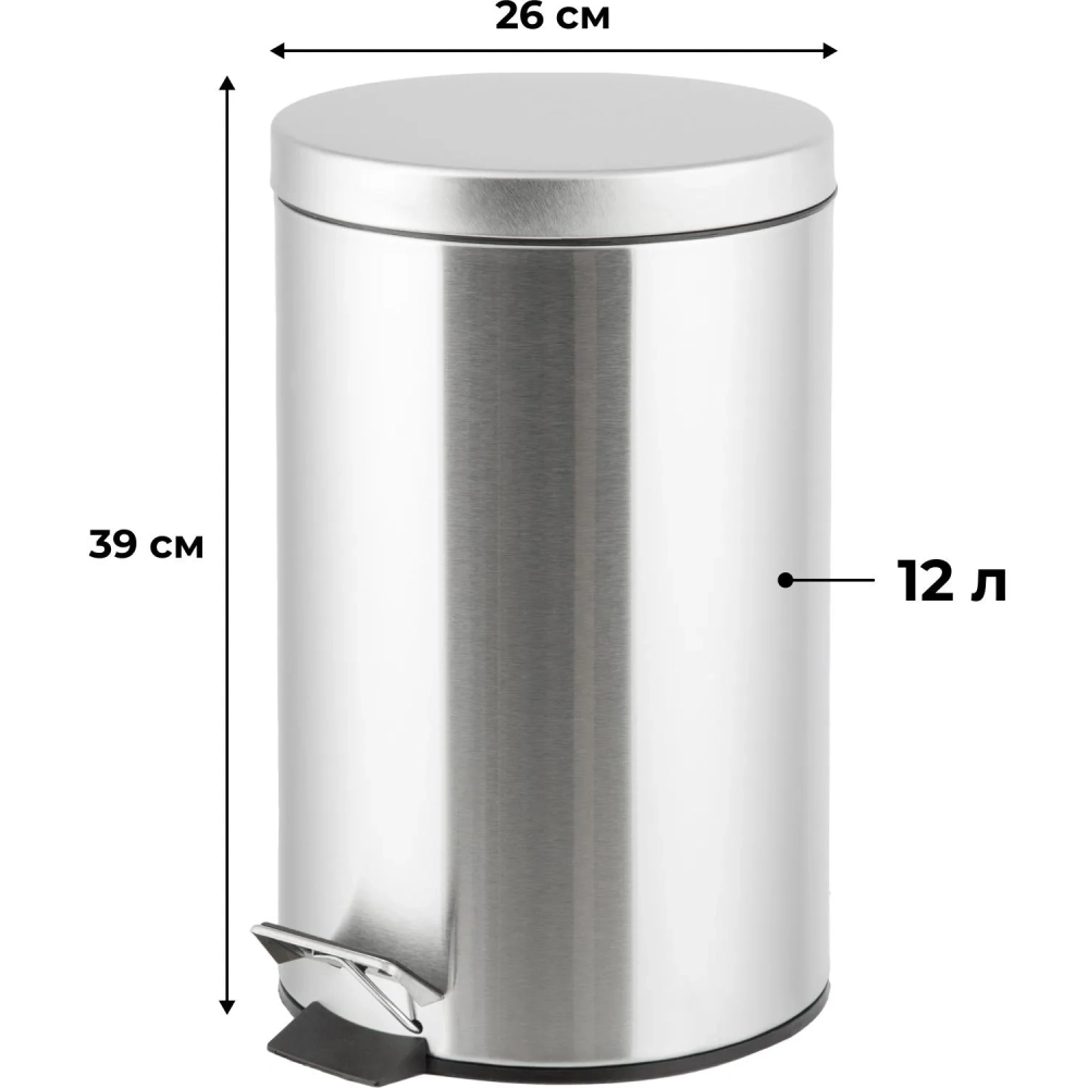 Ведро мусорное с педалью 12 л, матовое, нержавеющая сталь