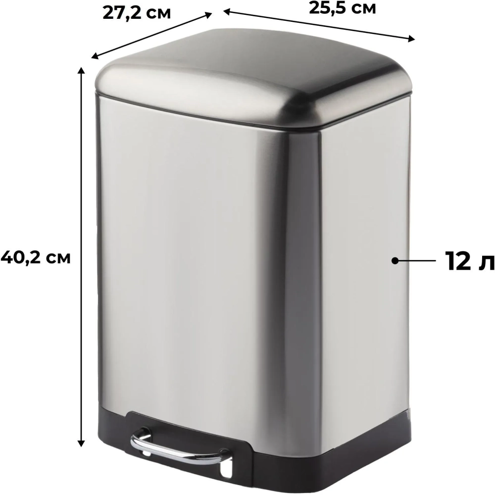 Ведро мусорное с педалью и доводчиком Luscan 12л,матов., прямоуг,нерж сталь