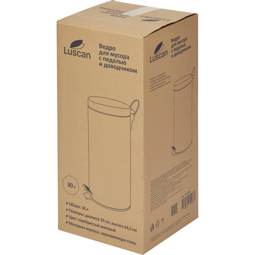 Ведро мусорное с педалью и доводчиком Luscan 30 л, матовое, нерж сталь