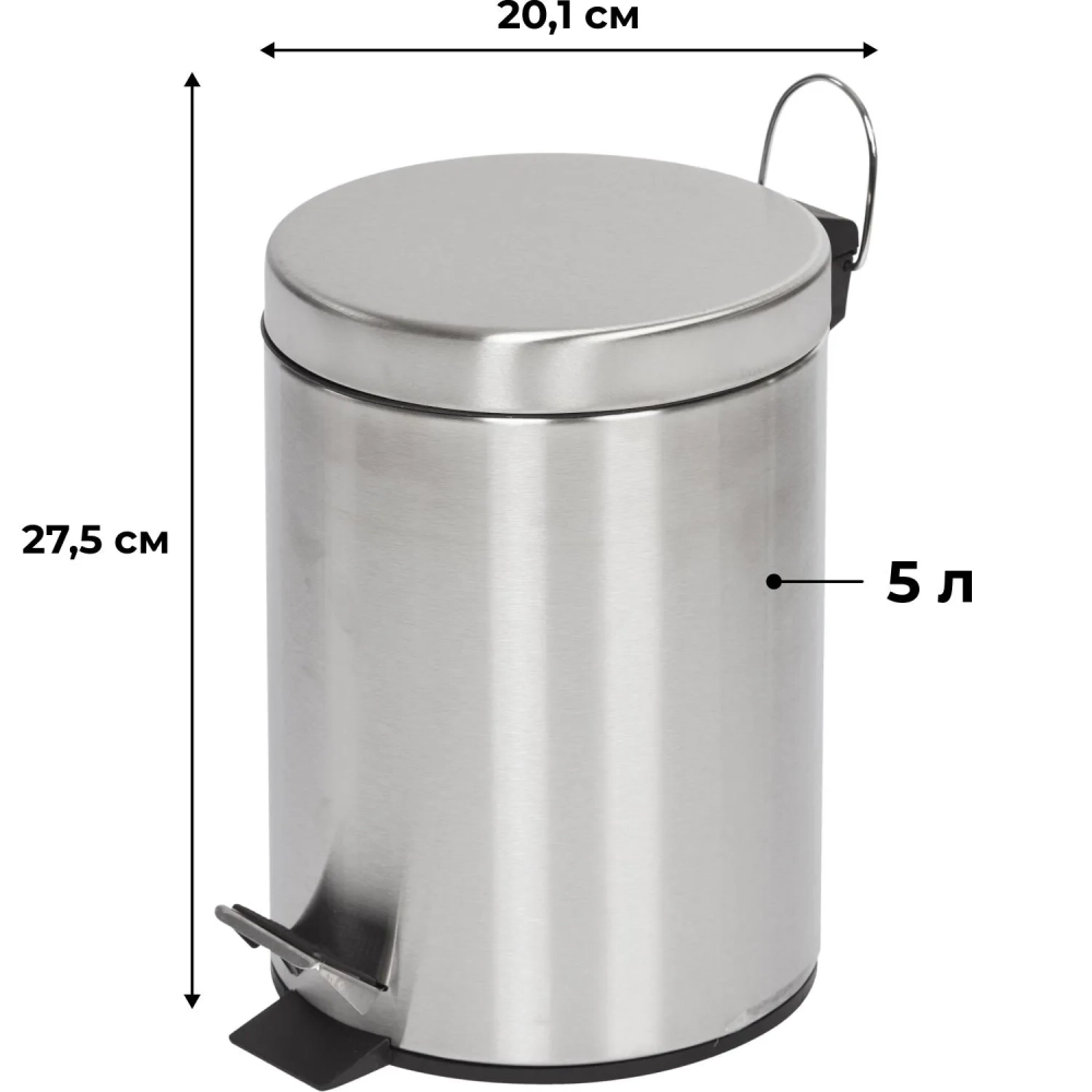 Ведро мусорное с педалью и доводчиком Luscan 5л, матовое, нерж сталь