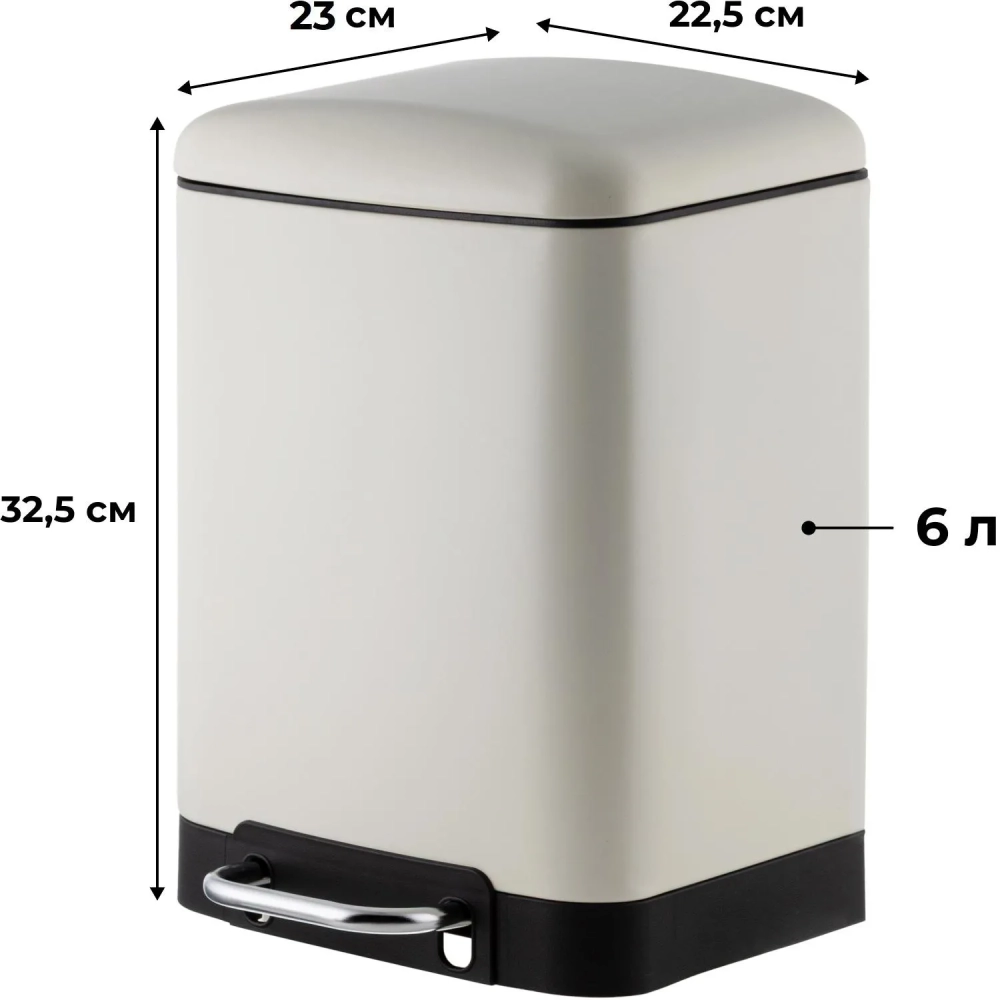Ведро мусорное с педалью и доводчиком Luscan 6л,бежевое,прямоуг,металл