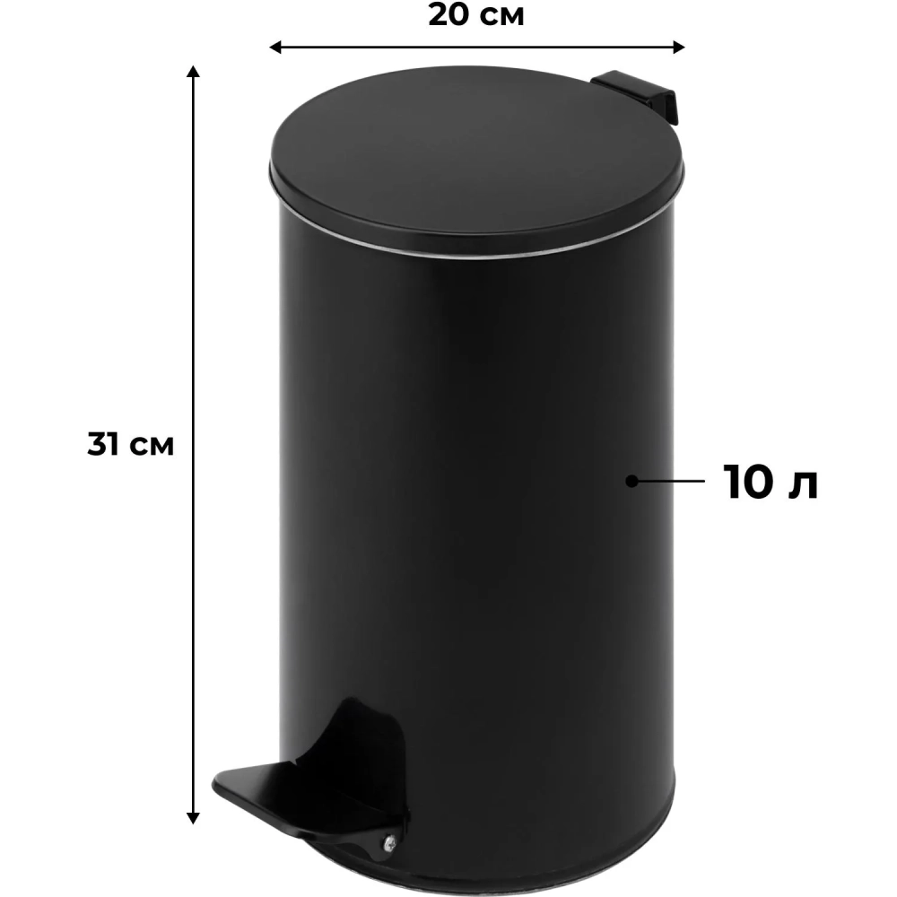 Ведро мусорное с педалью круглое 10 л черное, 200 ммx 310 мм