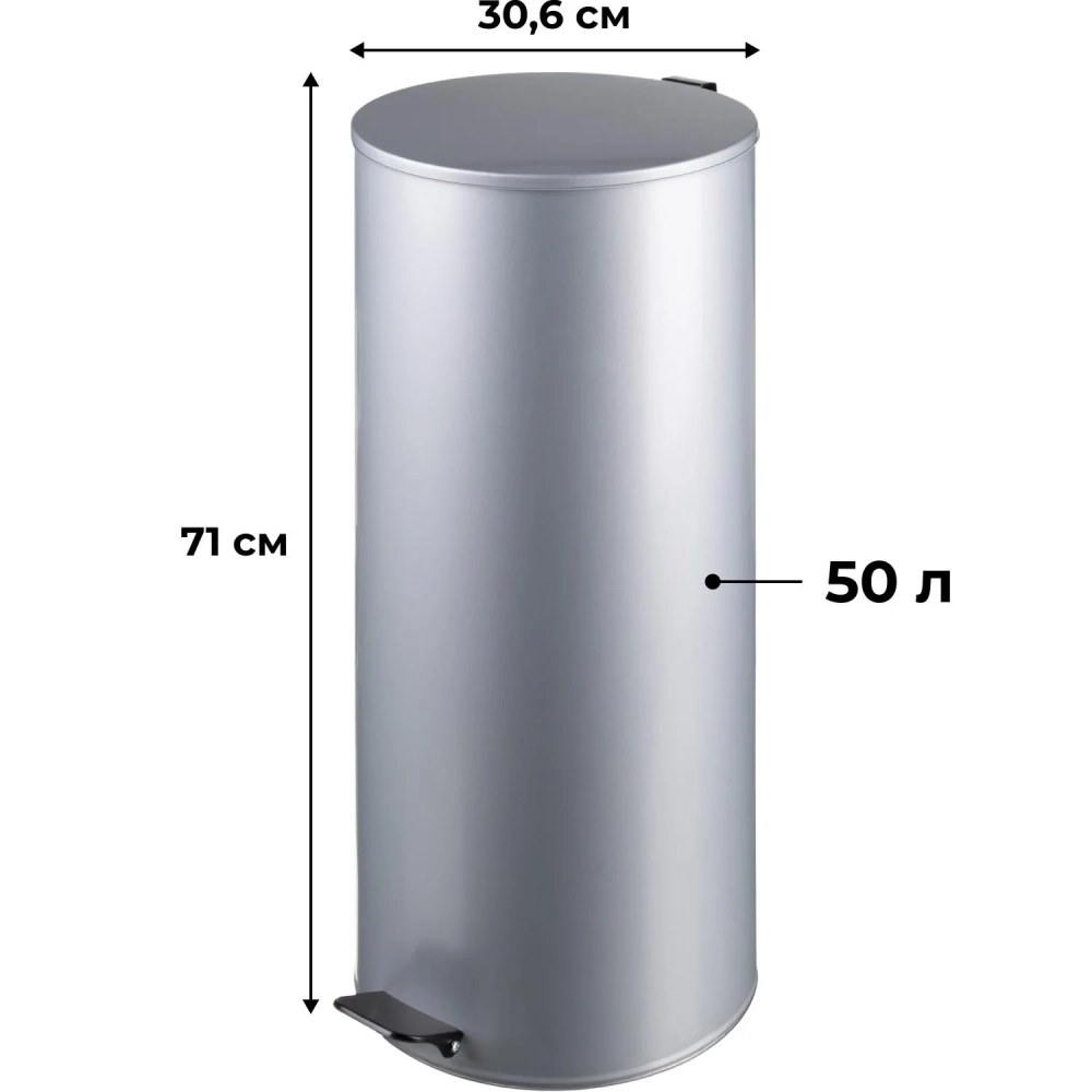 Ведро мусорное стальное 50л круглое сер с педалью и крышкой 300х710мм ТИТАН