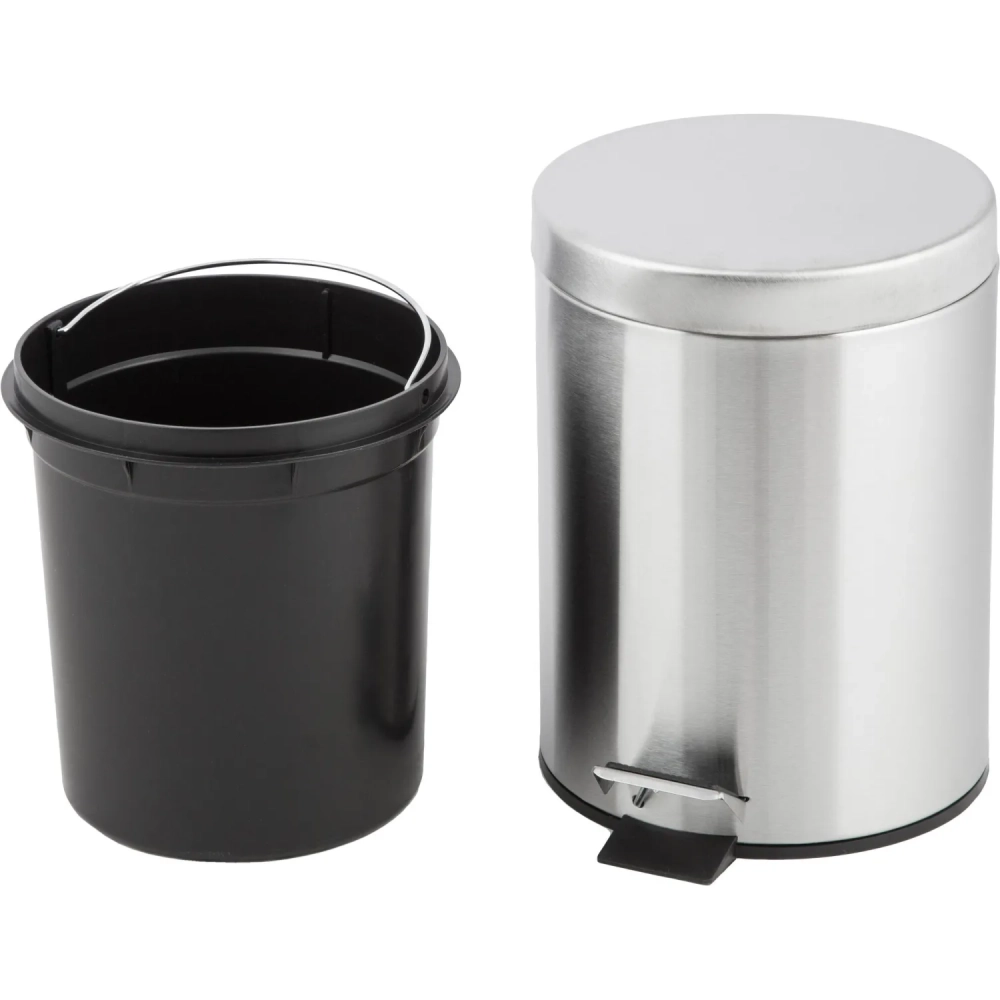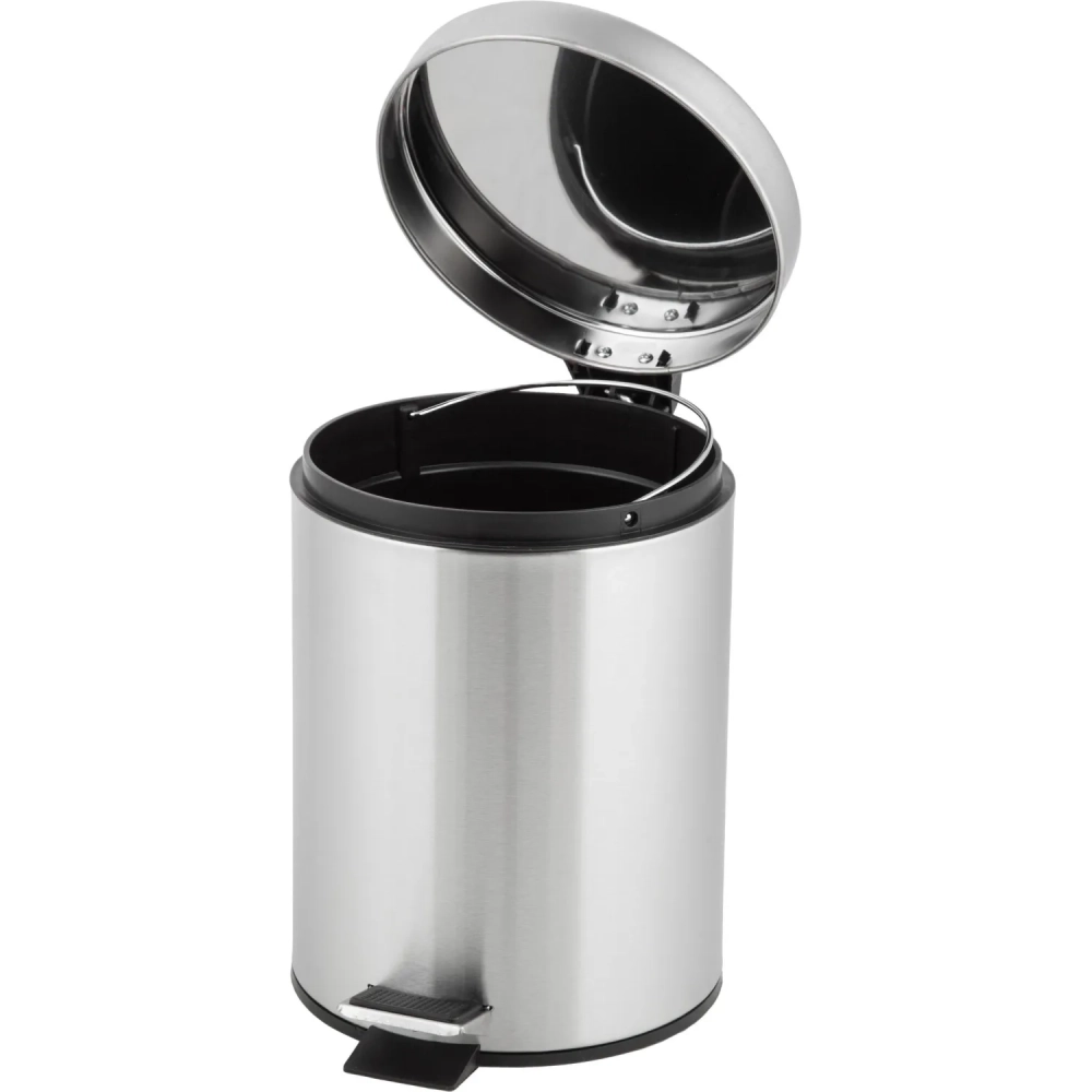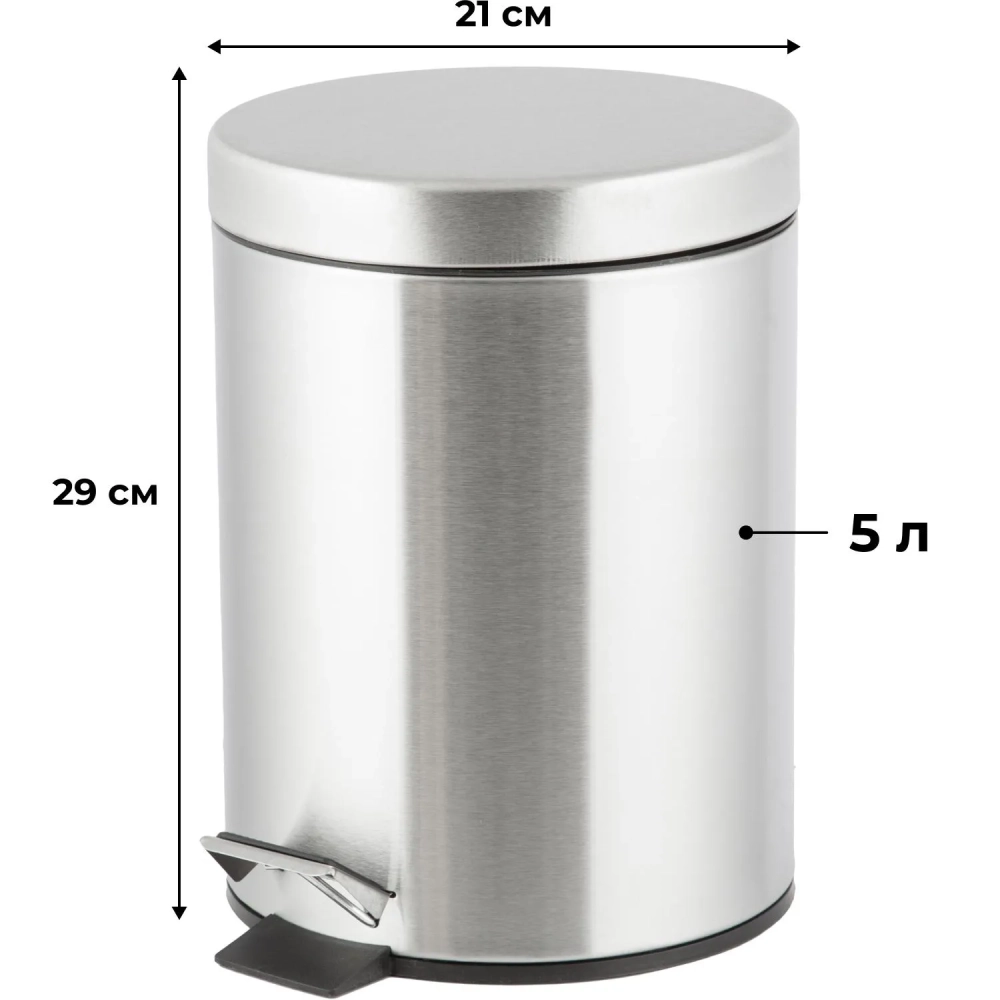 Ведро мусорное стальное 5л кругл сереб с пед и крышк матов 210х290мм _5L-NN