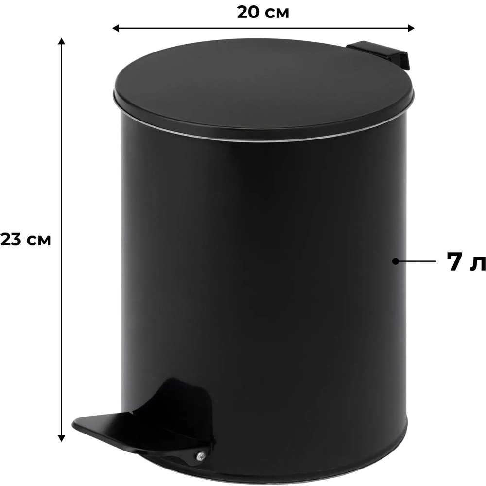 Ведро мусорное стальное 7л круглое черн с педалью и крышкой 200х230мм