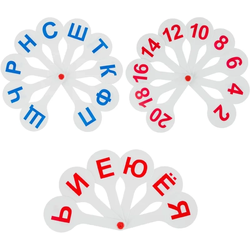 Веер-касса набор (3 веера) гласные-согласные буквы и цифры, ВК12