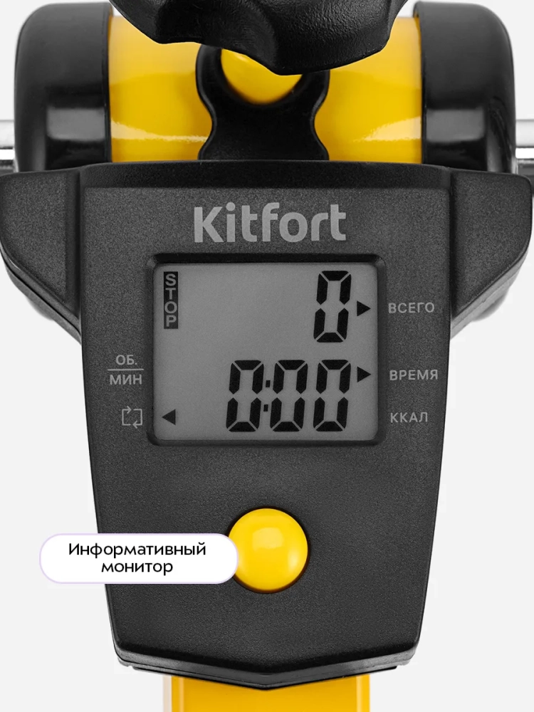 На мониторе велотренажера отображаются параметры тренировки: количество оборотов педалей в минуту, суммарное количество оборотов педалей, время тренировки и количество сожженных калорий. Это позволит вам контролировать нагрузку во время тренировки и ее длительность.