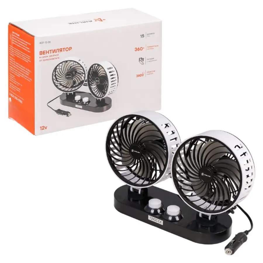 Вентилятор в салон двойной 2x15см 12В, раздельная регулировка