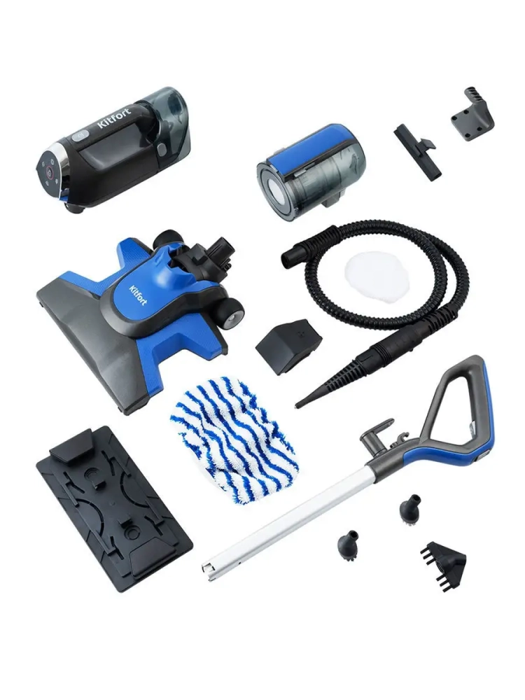 Вертикальный моющий пылесос для дома 1800Вт KT-555 — это инновационная бытовая техника, которая станет незаменимым помощником в вашем доме. Этот мощный пылесос сочетает функции паровой швабры и ручного пароочистителя, что делает его идеальным для уборки различных поверхностей. Вертикальный дизайн позволяет легко хранить прибор даже в ограниченном пространстве. С помощью горячего пара пылесос эффективно очищает полы от грязи и въевшихся пятен, а также дезинфицирует поверхности от бактерий и микробов. Пар уничтожает клещей и других мелких вредителей, обеспечивая чистоту и безопасность вашего дома. Прибор работает в шести режимах: одновременное всасывание пыли с обработкой паром, всасывание мусора, чистка паром, уборка ручным пароочистителем, мойка стекол и зеркал, отпаривание тканей. Это делает его универсальным решением для любой задачи по уборке. Паровой пылесос оснащен функцией вертикальной парковки и удобными держателями на ручке для хранения шнура длиной 5 м. Это позволяет проводить уборку на большом расстоянии от розеток без необходимости постоянного переключения между ними. Контейнер объемом 300 мл обеспечивает длительную работу без частой дозаправки водой. Проводной электровеник легко справляется с рассыпанными крошками или песком от обуви благодаря своей мощности. Пылесос Kitfort КТ-555 подходит не только для домашнего использования — он эффективен также в офисах или гостиницах при очистке интерьеров как внутри помещений так и вне их. Этот моющий аппарат обладает встроенным парогенератором для создания влажного пара высокого давления.