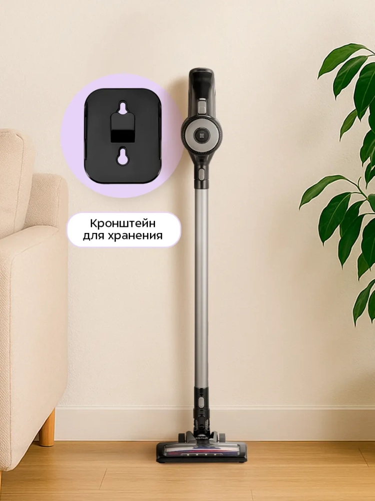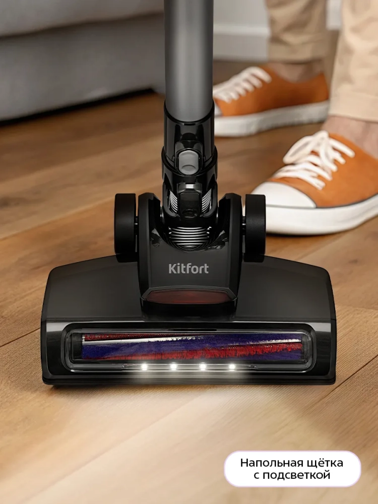 Беспроводной вертикальный пылесос Kitfort КТ-5302 очень удобен при локальной уборке. Он компактен, всегда под рукой и готов к работе. При отсоединении удлинительной трубки и установке насадки он превращается в ручной пылесос. Его конструкция позволяет легко проникать в самые труднодоступные уголки квартиры. При этом не нужно передвигать громоздкий корпус проводного пылесоса и управляться с непослушным шлангом. Благодаря работе от аккумулятора не нужно включать вилку в розетку, провода не мешают под ногами. Поэтому пылесос имеет неограниченный радиус действия: от любого уголка квартиры до машины или беседки в саду. Пылесос оснащен маневренной турбощеткой, которая вращается в двух плоскостях.
