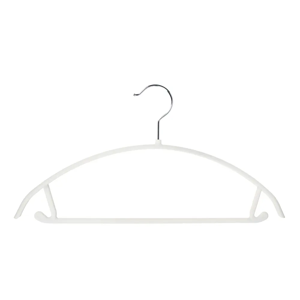 Идеальный баланс функциональности и элегантности для вашего гардероба. Пластиковая основа с приятным покрытием Soft-touch бережно сохраняет форму одежды, предотвращая появление складок и заломов. Удобная перекладина позволяет разместить брюки или юбку в комплекте с верхом, создавая аккуратную систему хранения. Строгий белый цвет и лаконичный дизайн делают эту вешалку универсальным решением для любого интерьера.