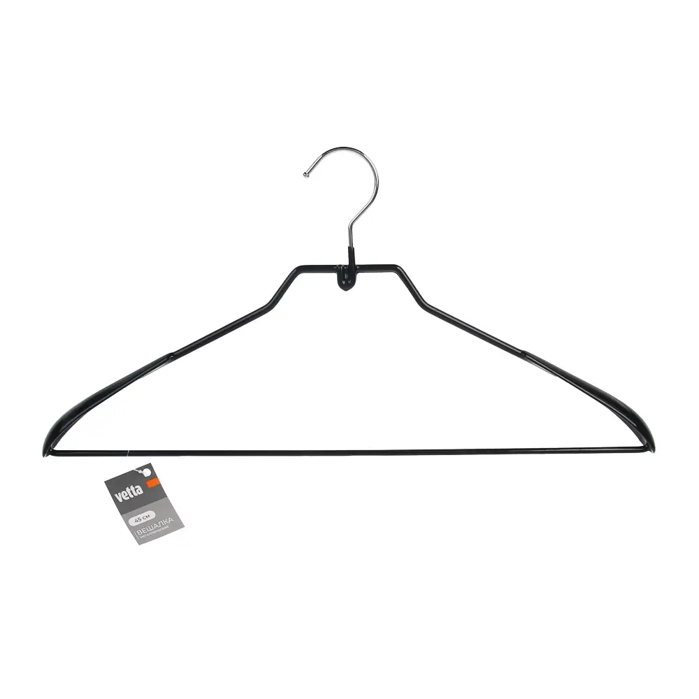 Вешалка для одежды VETTA длиной 45 см изготовлена из прочного металла с ПВХ-покрытием, что обеспечивает долговечность и защищает одежду от скольжения и деформации. Надёжная конструкция подходит для рубашек, блузок, лёгких курток и жакетов, помогая поддерживать порядок в гардеробе и аккуратно хранить вещи. В ассортименте.