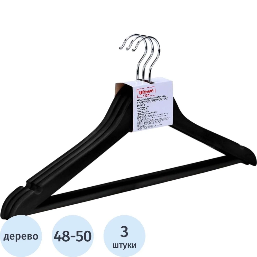 Вешалка-плечики WW_LH001-B/F6612NM-B3 дерев,перек,плос,р48-50 черн УП3шт