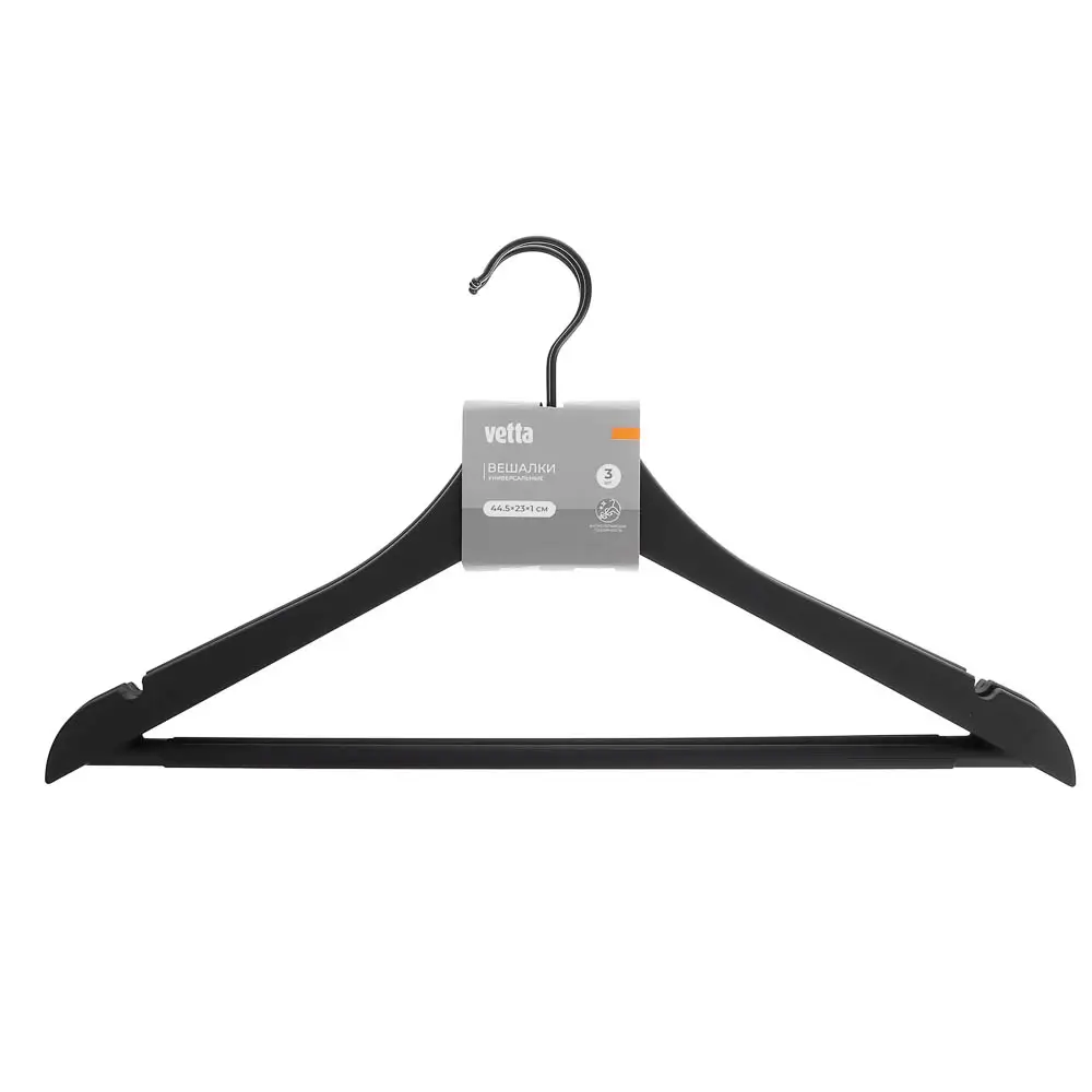 Вешалки для одежды тм VETTA, 3шт, 44,5x23x1см, пластик ABS, софт тач, цвет черный