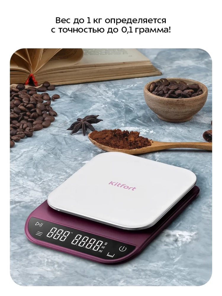 Электронные весы для кофе Kitfort КТ-854 обеспечивают высокую точность измерений и станут незаменимым помощником при приготовлении кофе. Многие способы приготовления этого напитка требуют тщательных измерений веса на протяжении всего процесса приготовления. Прежде всего, точность важна для приготовления кофе в кемексе и в пуровере, также весы будут полезными при приготовлении кофе в рожковой кофеварке и в процессе помола кофейных зерен.
