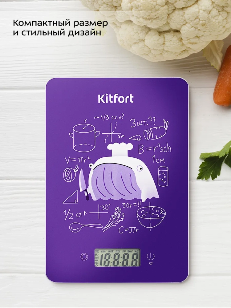 Эти кухонные весы Kitfort — идеальный выбор для тех, кто ценит точность и надежность. Они подходят как для домашнего использования, так и для профессиональных кухонь. Весы Kitfort — это не только функциональная, но и стильная техника, которая гармонично впишется в интерьер любой кухни. Благодаря компактным размерам, настольные весы легко разместить на кухонной поверхности, не занимая много места.