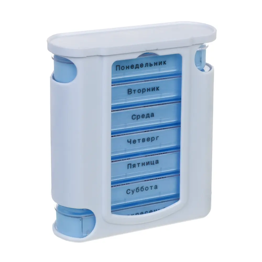 Пластиковый бокс для хранения таблеток VETTA – это компактный и удобный органайзер для таблеток, БАДов и витаминов. Имеет 7 блоков с маркировкой по дням недели. Каждый блок включает 4 ячейки: «утро», «день», «вечер», «ночь». Особая конструкция позволяет комфортно чередовать блоки по дням недели и заполнять их по мере необходимости. Вертикальная организация блоков позволяет сэкономить пространство.