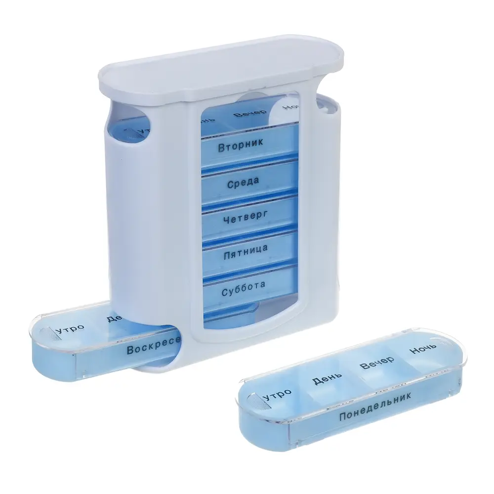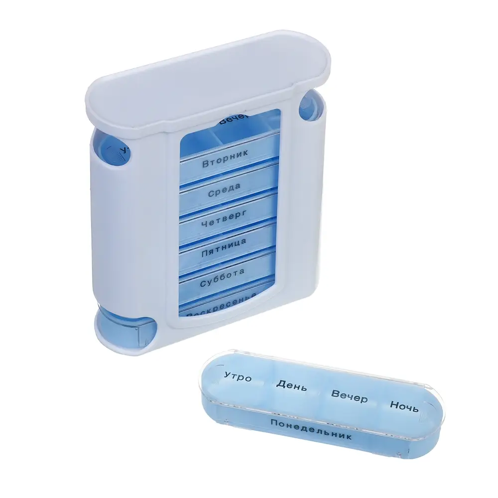 VETTA Бокс для хранения таблеток, 7 блоков по 4 отделения, пластик, 11,5х4,5x13 см