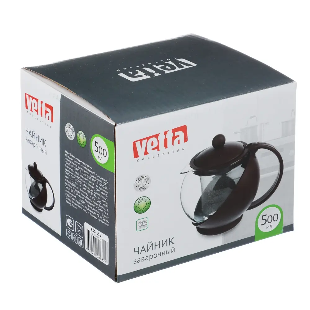 VETTA Чайник заварочный 500мл, ситечко из нержавеющей стали, стекло, полипропилен
