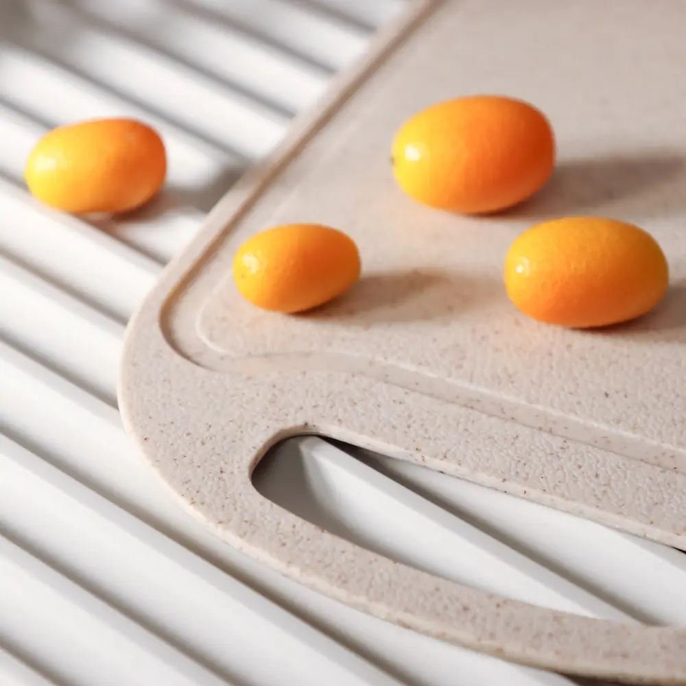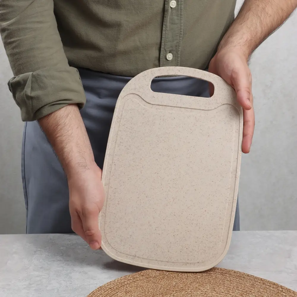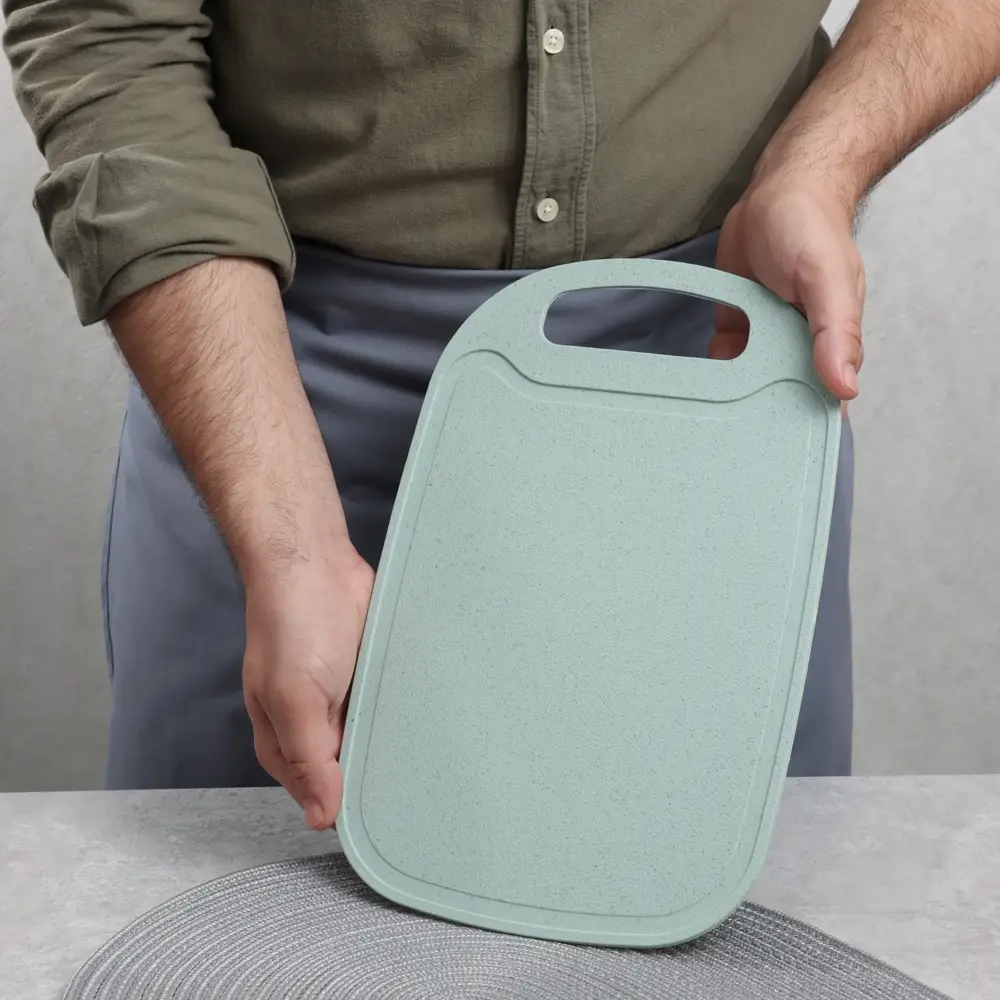Пластиковая разделочная доска Vetta Эко готова выполнять любые кулинарные задания. Шинковка, нарезка, очистка — на разделочной доске из пластика можно делать все и даже больше! Собрались ли вы порезать рыбу или разделать птицу, этот аксессуар всегда придет на выручку. Пластиковая поверхность не хранит ароматы продуктов, не впитывает сок фруктов и не окрашивается в их цвета. Размер 32,5х21,5х0,3 см. Изделие можно подвесить на крючок.