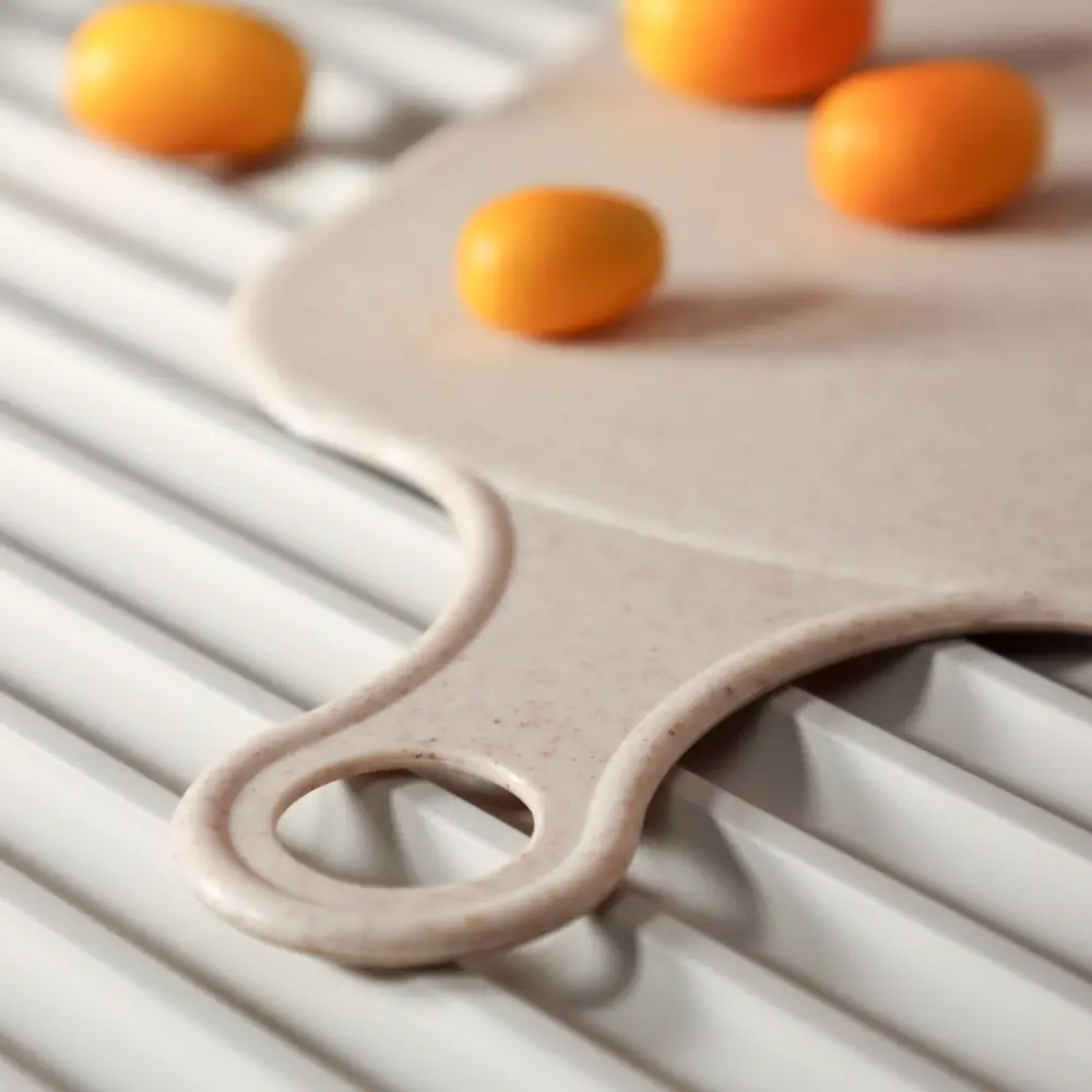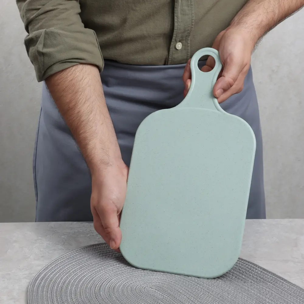 Пластиковая разделочная доска Vetta Эко готова выполнять любые кулинарные задания. Шинковка, нарезка, очистка — на разделочной доске из пластика можно делать все и даже больше! Собрались ли вы порезать рыбу или разделать птицу, этот аксессуар всегда придет на выручку. Пластиковая поверхность не хранит ароматы продуктов, не впитывает сок фруктов и не окрашивается в их цвета. Размер 34,5х18,8х0,3 см. Изделие можно подвесить на крючок.