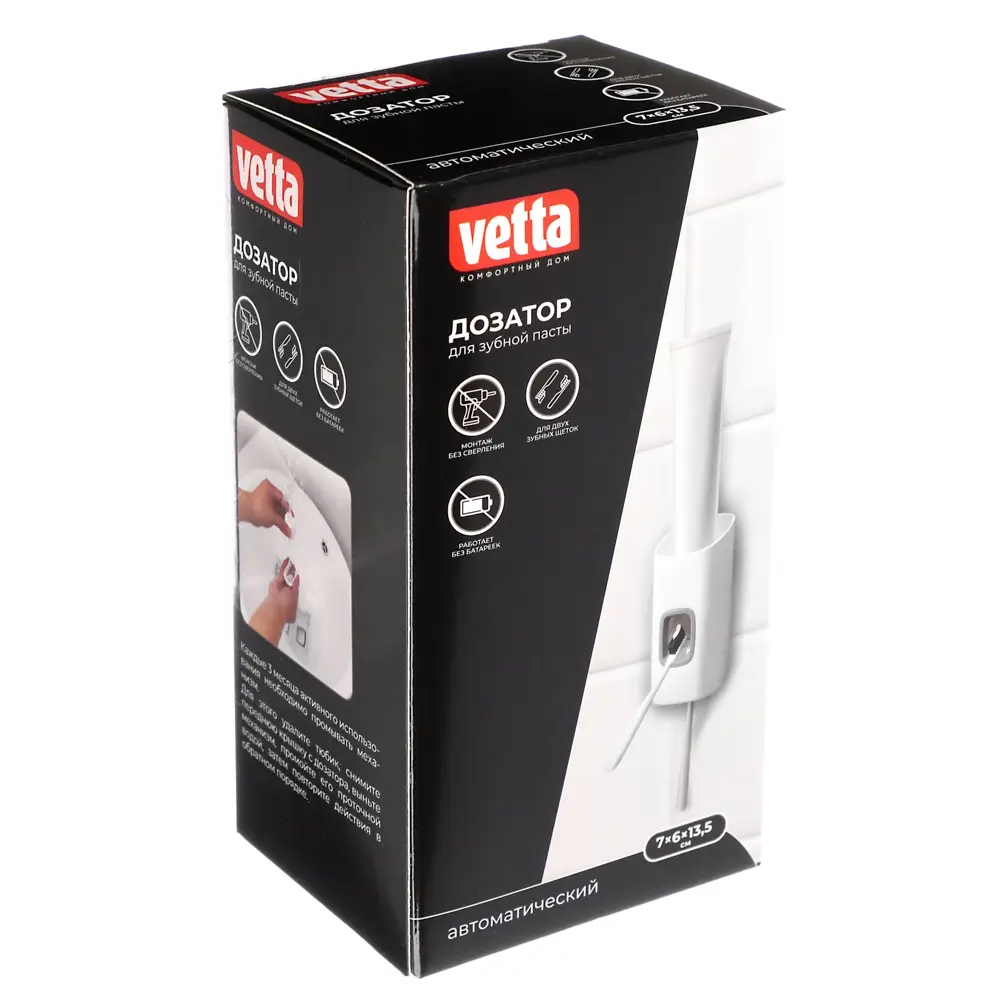 VETTA Дозатор автомат. настен. д/зуб.пасты с держателем под 2 зуб.щетки,7х6х13,5см, пластик