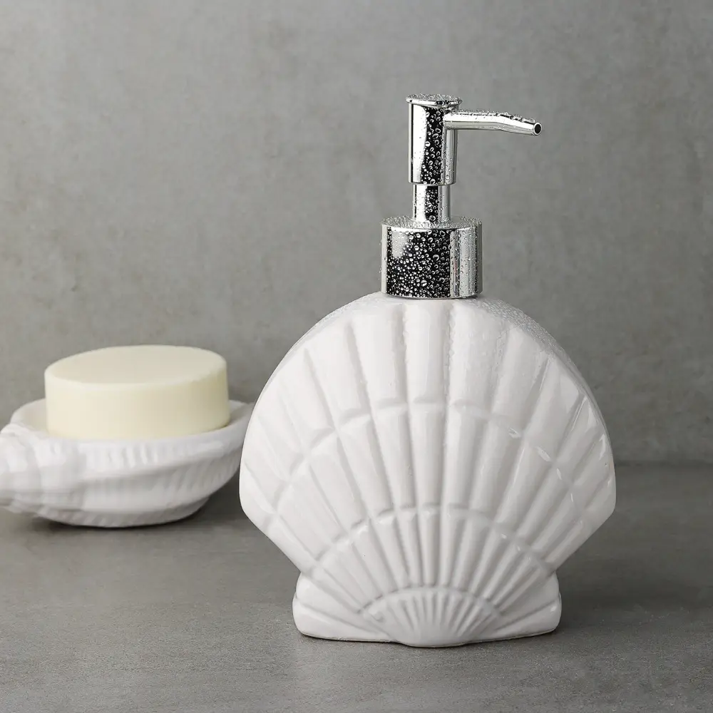 VETTA Дозатор для жидкого мыла "Океан", выполненный из керамики, — это стильный и функциональный аксессуар для ванной комнаты. Керамический корпус обеспечивает долговечность, устойчивость к влаге и простоту в уходе, делая дозатор практичным и надёжным в использовании. Дозатор оснащён удобным механизмом подачи жидкого мыла, обеспечивая гигиеничность и лёгкость в использовании.