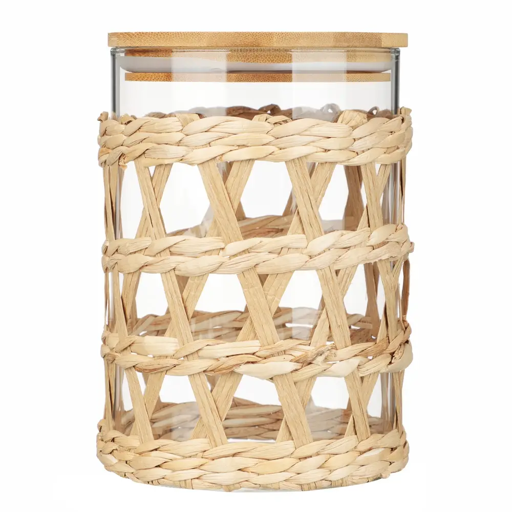 Банка для хранения VETTA ЭКО Жгут объёмом 1100 мл и размером 16х11 см с соломенным плетением сочетает натуральные материалы и современную функциональность. Стеклянный корпус с декоративным плетением из соломы – экологичный акцент в интерьере Бамбуковая крышка обеспечивает герметичное хранение круп, чая, кофе, орехов. Создаёт атмосферу эко-стиля на кухне, сохраняя продукты свежими.