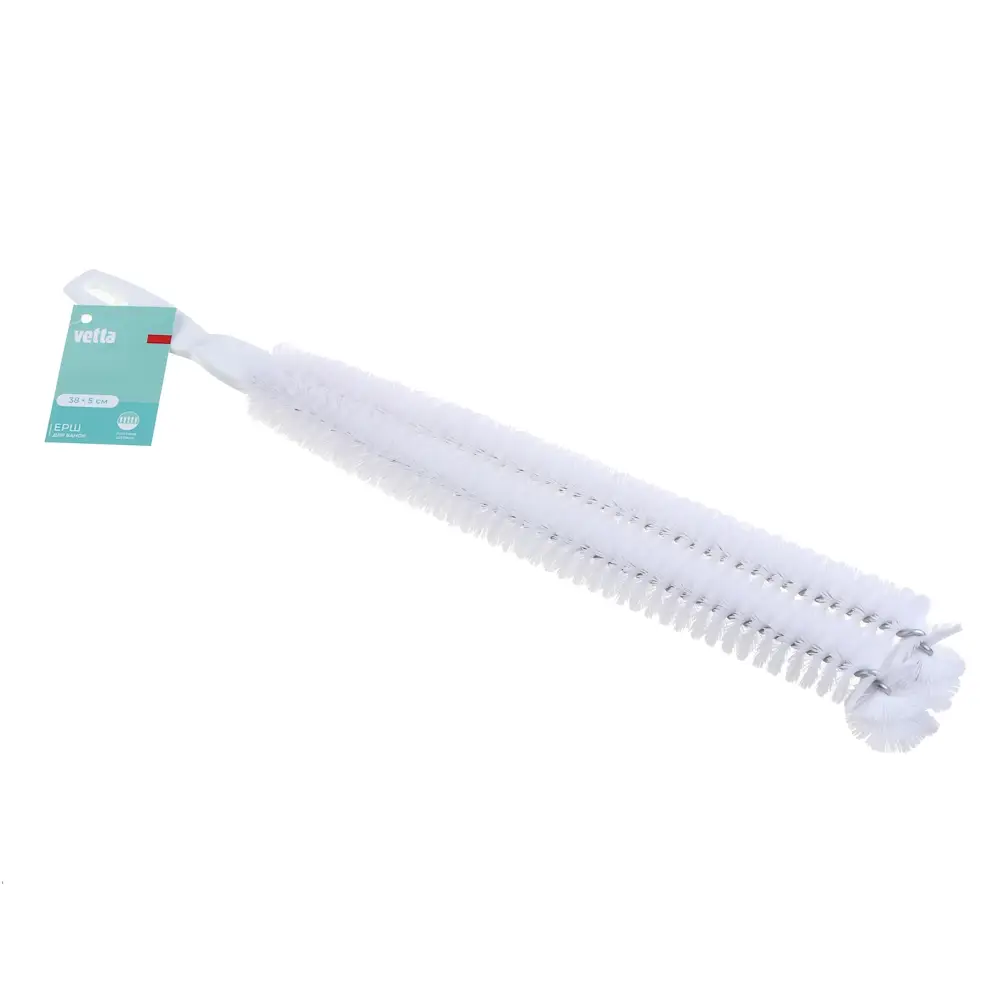 Ершик предназначен для мытья бутылок, банок, термосов и других предметов. Изделие оснащено износостойкой щетиной средней жесткости, выполненной из сложных полимеров и закрепленной на металлическом крученом стержне. Эргономичная рукоятка, изготовленная из полипропилена (пластика), оснащена отверстием для подвешивания.