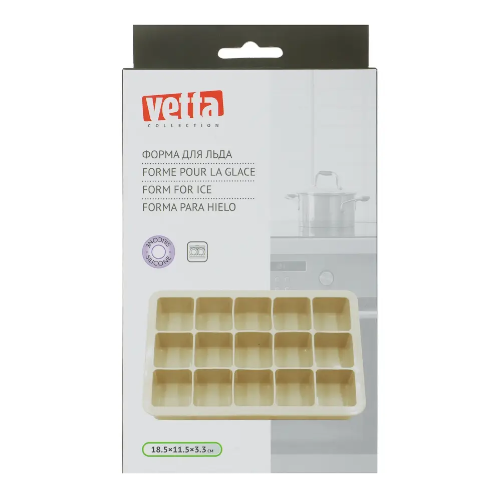 Силиконовая форма для льда VETTA "Кубы" размером 18,5х11,5х3,3 см – удобное приспособление для приготовления льда, желе, заморозки продуктов или соусов. Процесс заморозки ингредиентов с этой формой очень прост. Вам нужно просто заполнить ячейки формы водой или другой жидкостью, поместить ее в морозильную камеру, а затем через несколько часов достать готовые кубики льда. Благодаря мягкому силикону, лед легко извлекается из формы и не повреждается при этом. Силикон – экологически чистый материал, не содержит посторонних примесей, не впитывает запахи. Количество ячеек – 15. Можно использовать при температуре от -40 до +240 °С. Силикон устойчив к воздействию водных растворов солей, спиртов, масел, слабых кислот и щелочей. Перед первым использованием рекомендуется форму вымыть и смазать маслом.