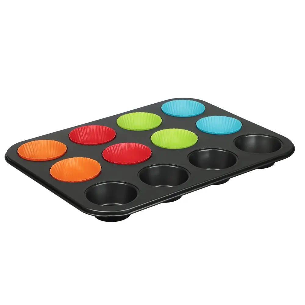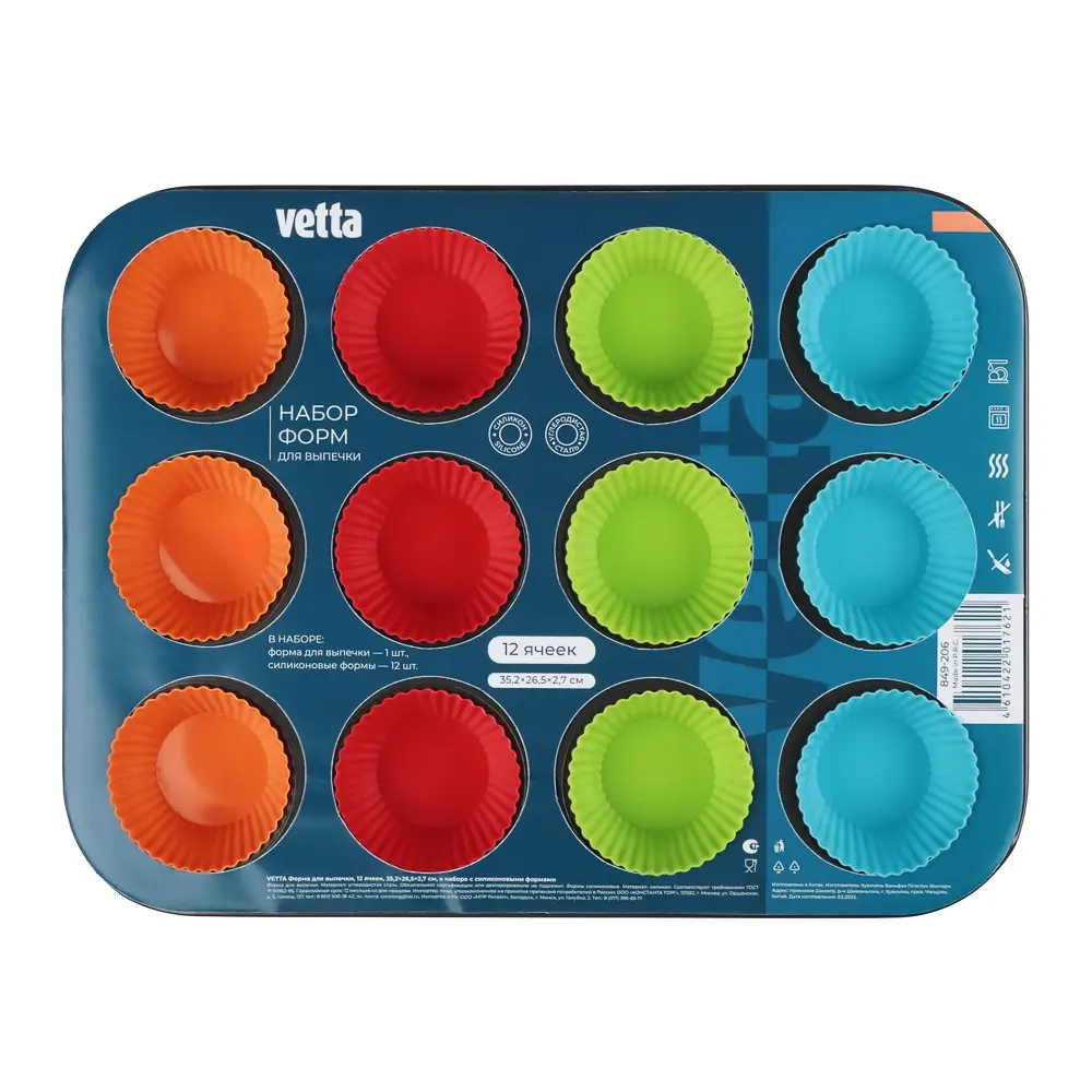 VETTA Форма для выпечки 12 ячеек с силиконовыми формами, 35,2х26,5х2,7см, угл.сталь, антипригарное п