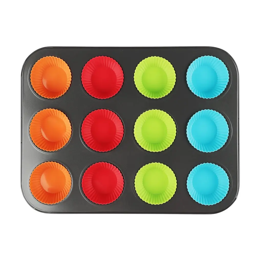 Форма для выпечки VETTA 12 ячеек с силиконовыми формами, размер 35,2х26,5х2,7 см – это практичное решение для приготовления маффинов, кексов и капкейков в духовке. Состоит из двух частей: поддона из углеродистой стали с ячейками и 12 силиконовых форм. Основание из углеродистой стали равномерно нагревается, устойчиво к деформации при высоких температурах, а силиконовые вставки обеспечивают дополнительное удобство при извлечении готовой выпечки, а также исключают пригорание и прилипание, легко моются.