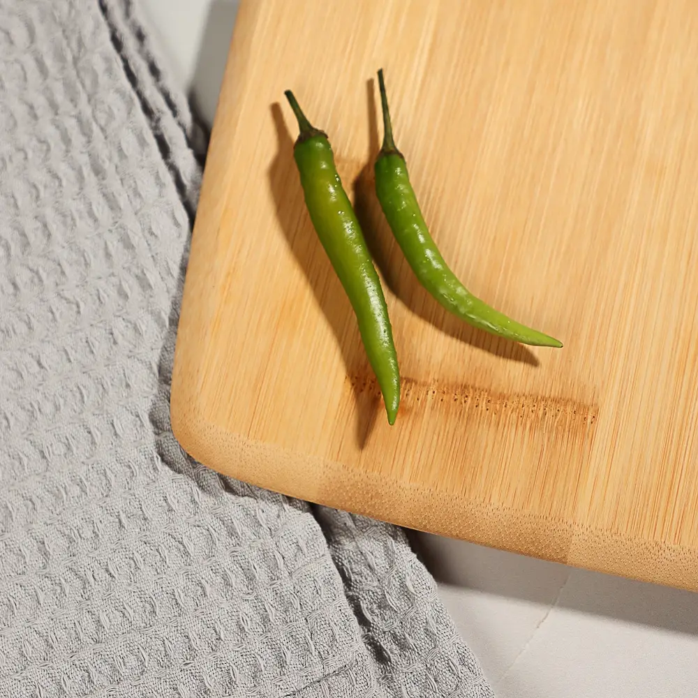 Прямоугольная деревянная разделочная доска — универсальный помощник на кухне, который «подставит вам плечо» в нужный момент. Нарезка фруктов, шинкование овощей, разделка рыбы и птицы — на прямоугольной разделочной доске из дерева легко выполняются любые кулинарные задания. Гигиеничный материал обладает природными антимикробными свойствами и высокой прочностью. Натуральное дерево не тупит ножи, не скользит на поверхности стола и предотвращает скольжение продуктов. После использования аксессуар достаточно сполоснуть теплой водой и высушить в вертикальном положении.
