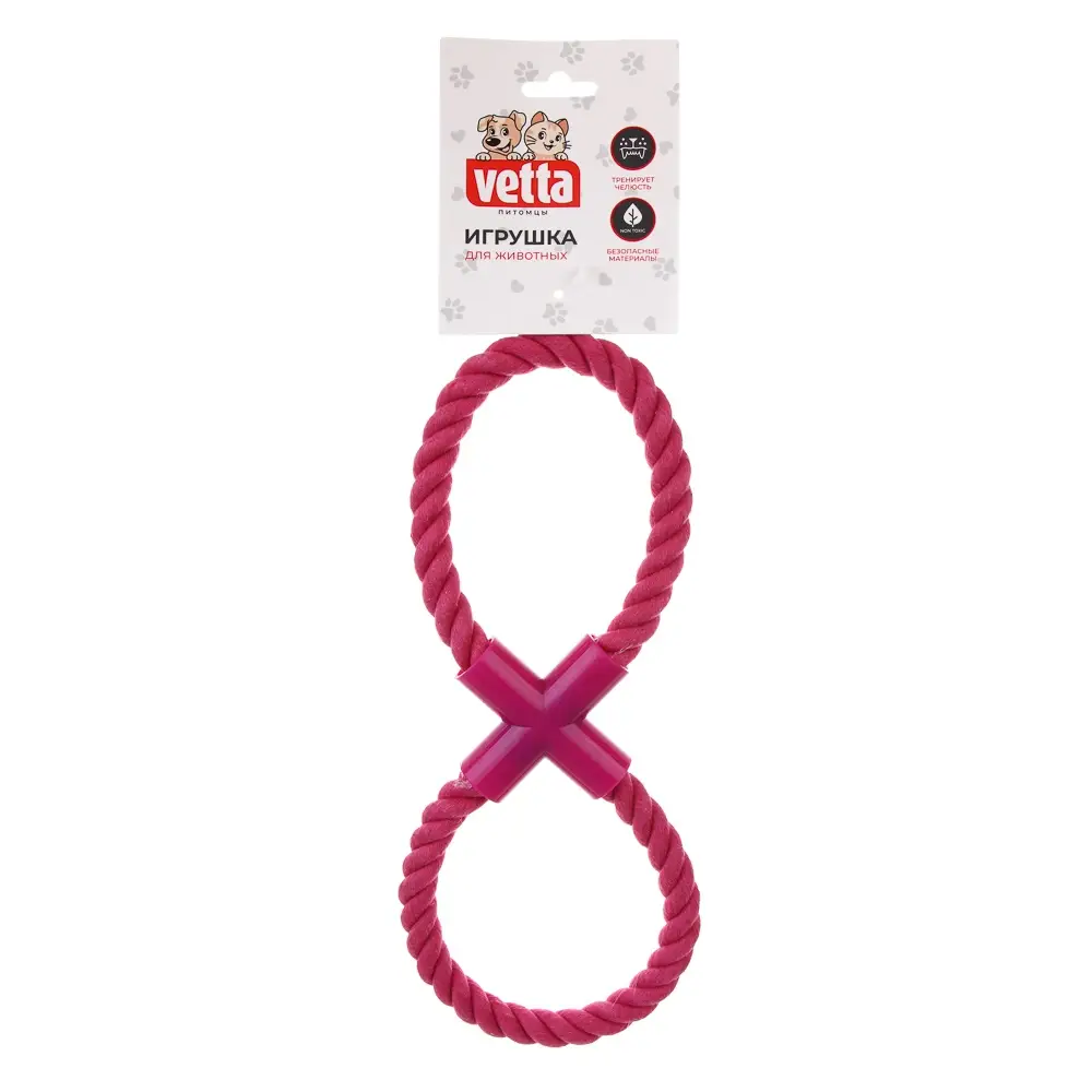 Игрушка для домашних животных VETTA — это двойное хлопковое кольцо размером 27 x 1,5 см, которое подходит для собак всех возрастов и весовых групп. Она помогает тренировать мышцы челюсти, чистить зубы и массировать дёсны, что особенно важно для поддержания здоровья полости рта животного. Кроме того, игрушку можно использовать для отвлечения внимания собаки в ваше отсутствие, обеспечивая комфорт и спокойствие питомца.