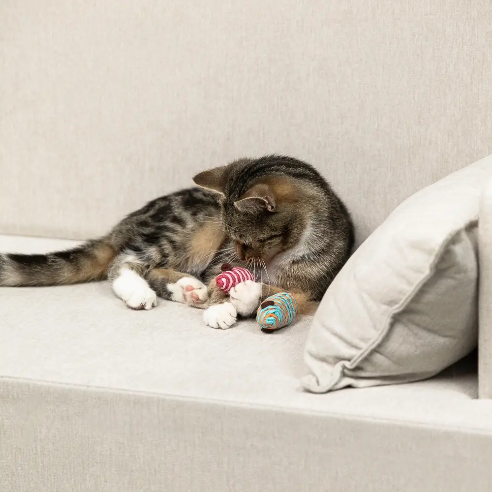 Набор мышек VETTA — это замечательный способ развлечь вашего питомца. В наборе вы найдёте две мышки размером 8 сантиметров, сделанные из качественного материала. Они безопасны для животного и могут использоваться как грызунок, не повреждая когти. Игрушка поможет развить охотничьи инстинкты вашего питомца, а также улучшить его физическую активность.