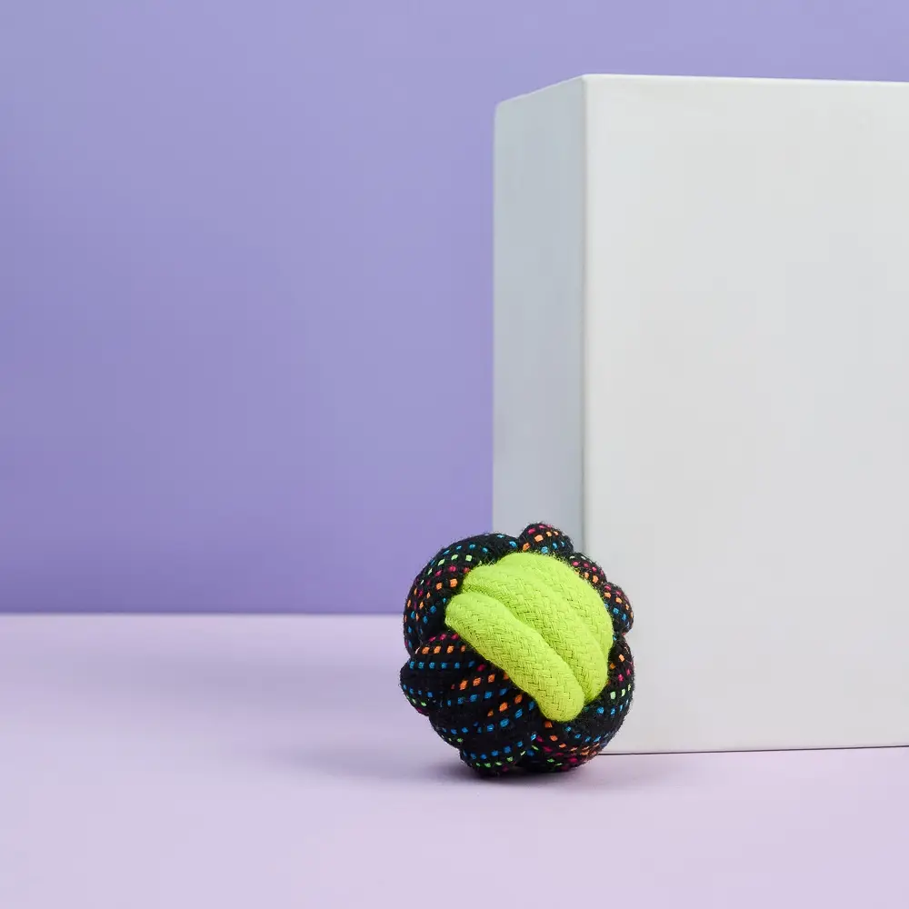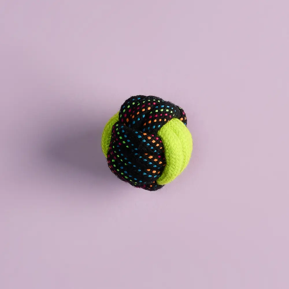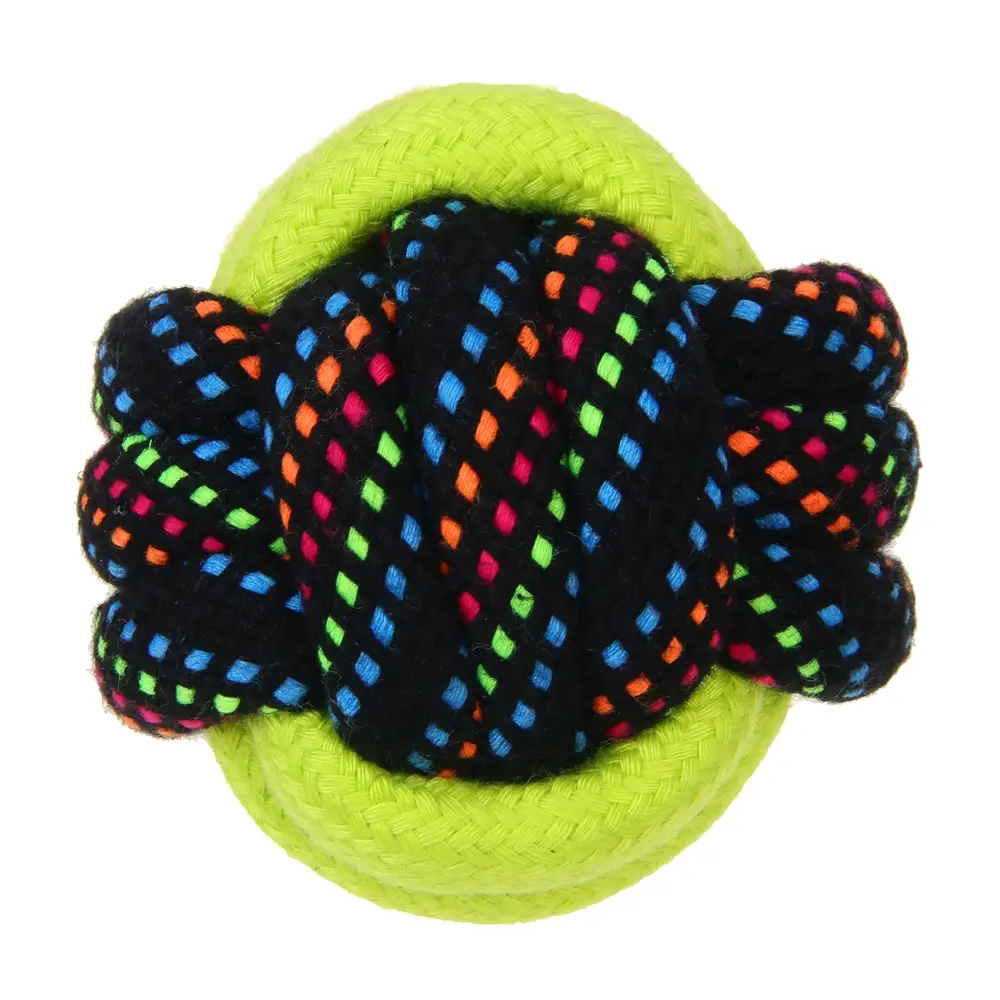 Плетеный мяч для собак, изготовленный из прочного и безопасного для здоровья питомца материала – хлопка и полиэстера. Диаметр мяча составляет 6,5 см, что делает его идеальным для игр как для маленьких, так и средних собак. Этот мяч станет отличным инструментом для активных игр и тренировки жевательных рефлексов вашего питомца. Хлопковая нить обеспечивает мягкость при укусе, а полиэстер добавляет прочности, что гарантирует долговечность игрушки даже при активном использовании. Отличный выбор для веселых игр на улице и дома!