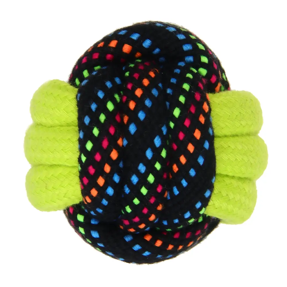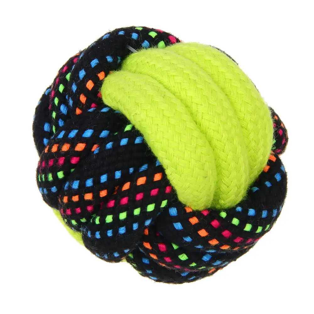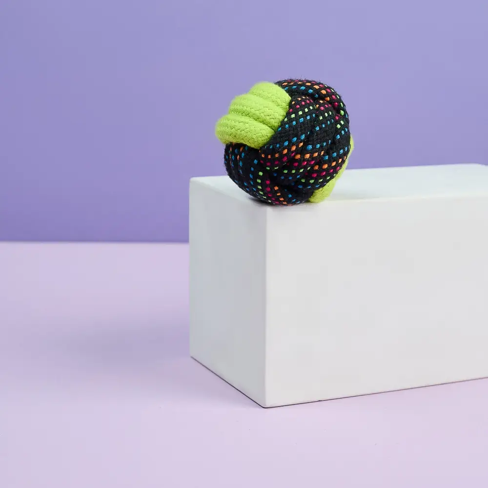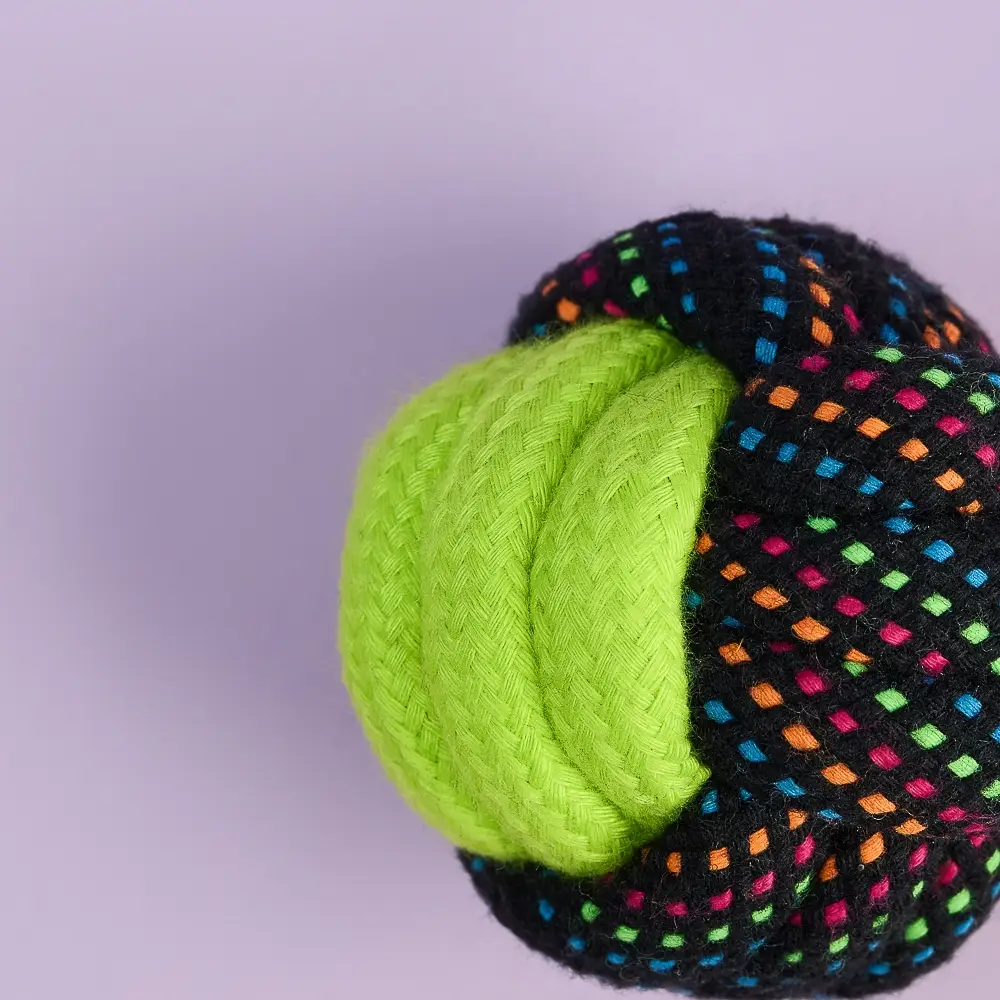 Плетеный мяч для собак, изготовленный из прочного и безопасного для здоровья питомца материала – хлопка и полиэстера. Диаметр мяча составляет 6,5 см, что делает его идеальным для игр как для маленьких, так и средних собак. Этот мяч станет отличным инструментом для активных игр и тренировки жевательных рефлексов вашего питомца. Хлопковая нить обеспечивает мягкость при укусе, а полиэстер добавляет прочности, что гарантирует долговечность игрушки даже при активном использовании. Отличный выбор для веселых игр на улице и дома!